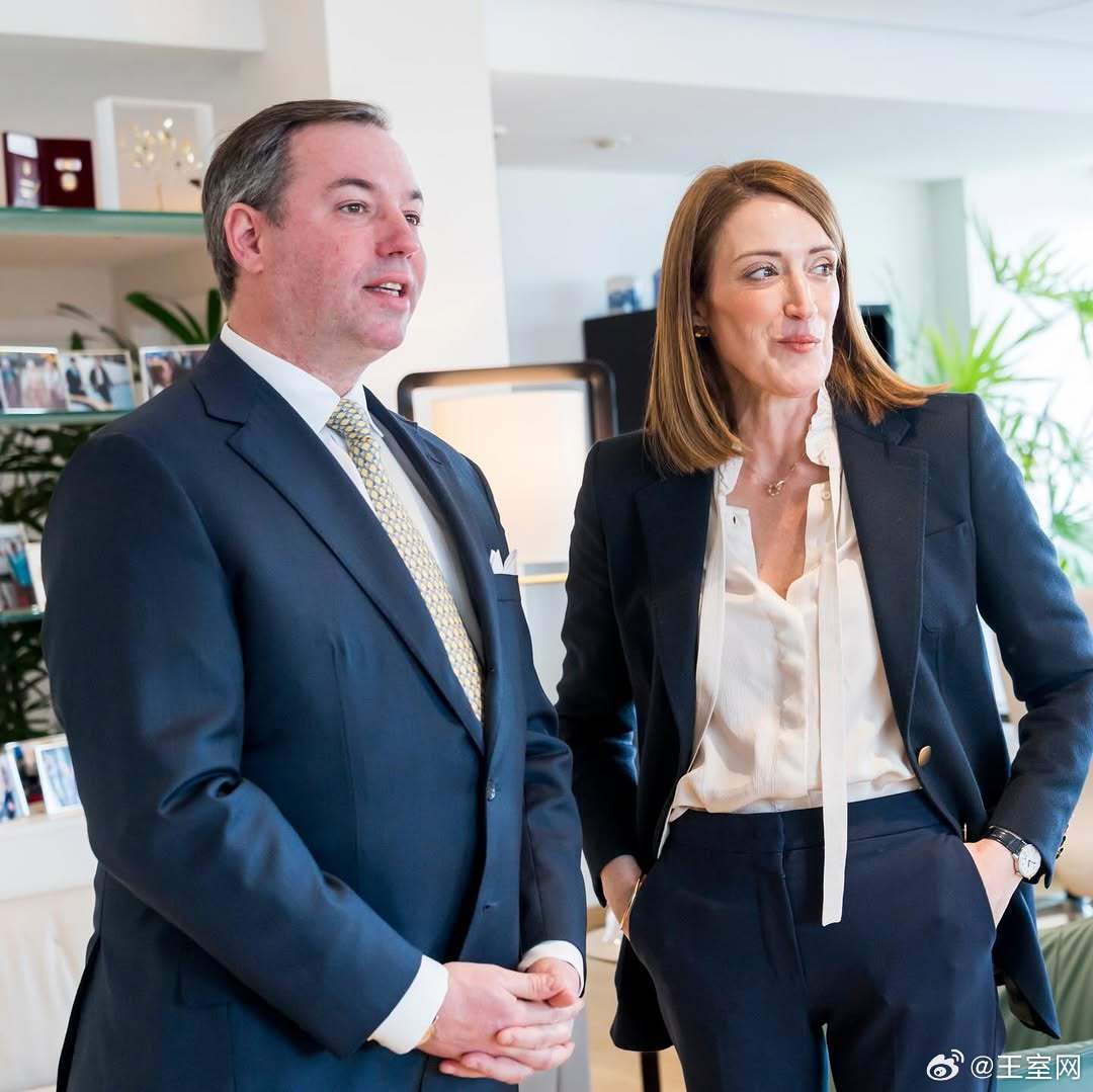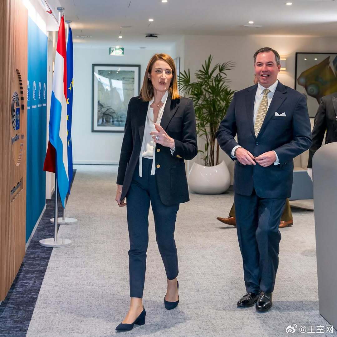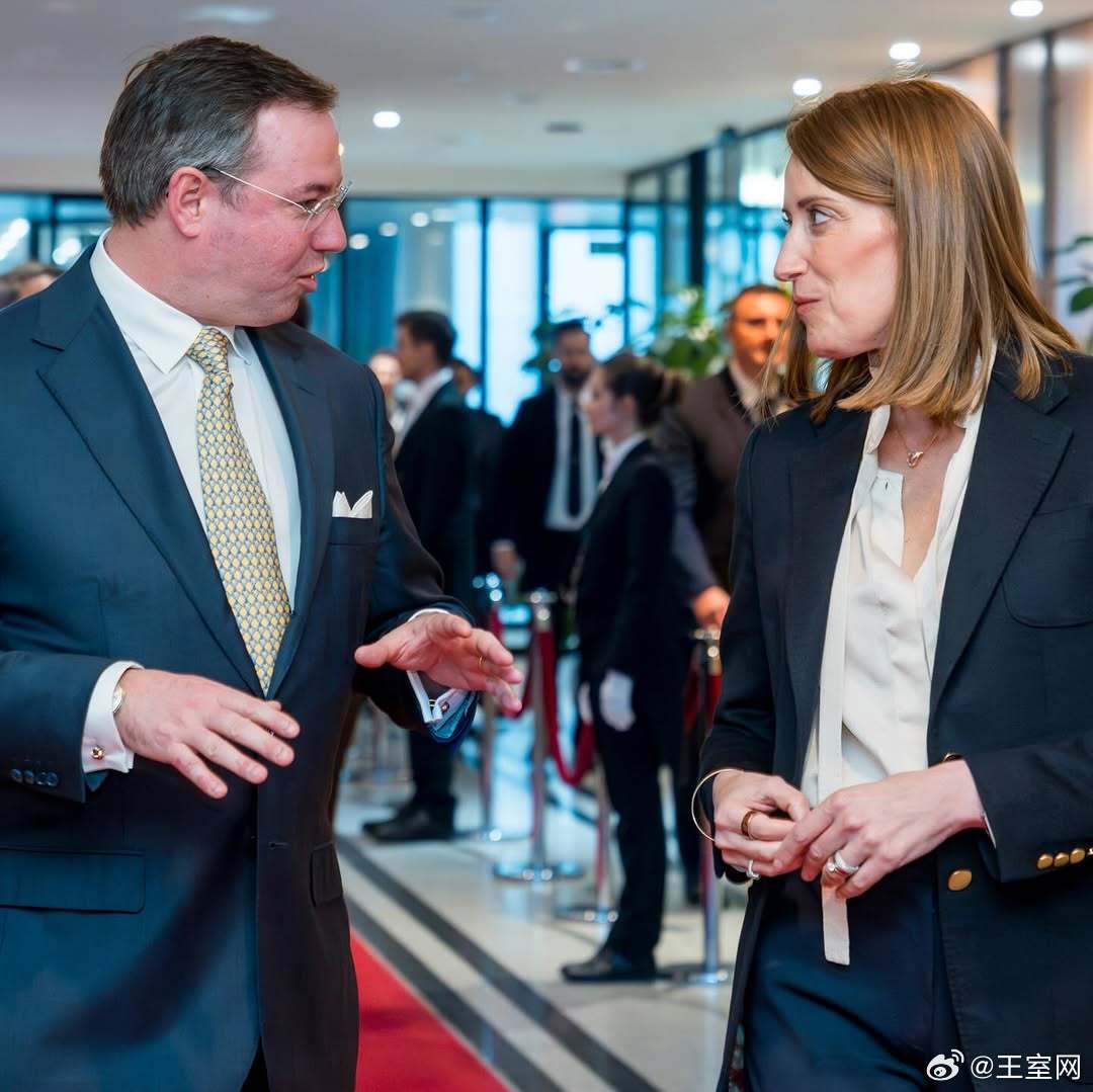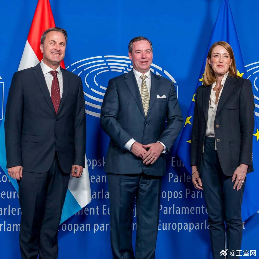 卢森堡王室🇱🇺 3月24日,纪尧姆大公访问欧洲议会,欧洲议会议长罗伯塔·梅措