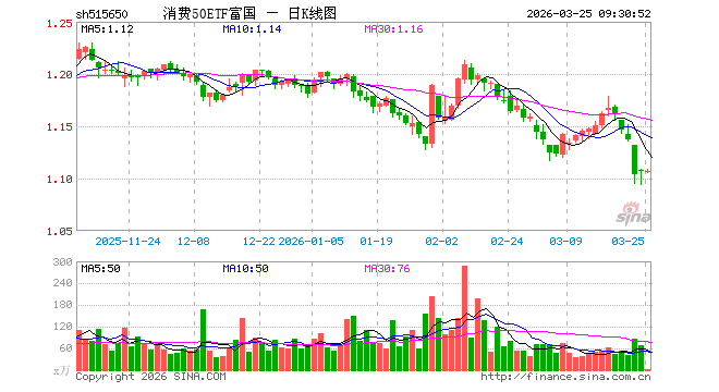 消费50ETF富国(515650)业绩比较基准为中证消费50指数收益率,管理人为富国基金管理有限公司,基金经理为王乐乐,成立(2019-10-14)以来回报为10.64%,近一个月回报为-5.07%。