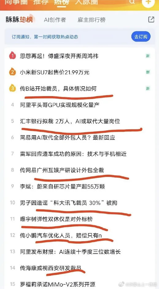 在国内,尽管各巨头由于“众所周知”的原因将其修饰为“业务调整”或“组织优化”,但脉脉热搜上“15条占6条”的裁员话题撕开了最后的遮羞布。