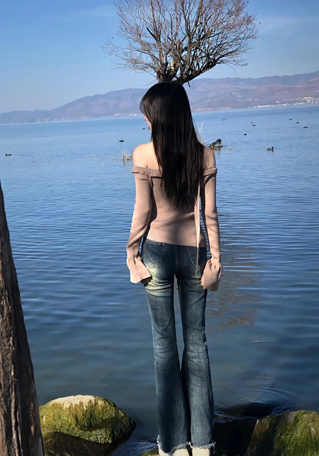 看到一个女孩坐在山河岸边看手机,这画面还挺奇妙。风景那么美,她却低头看着手机。或
