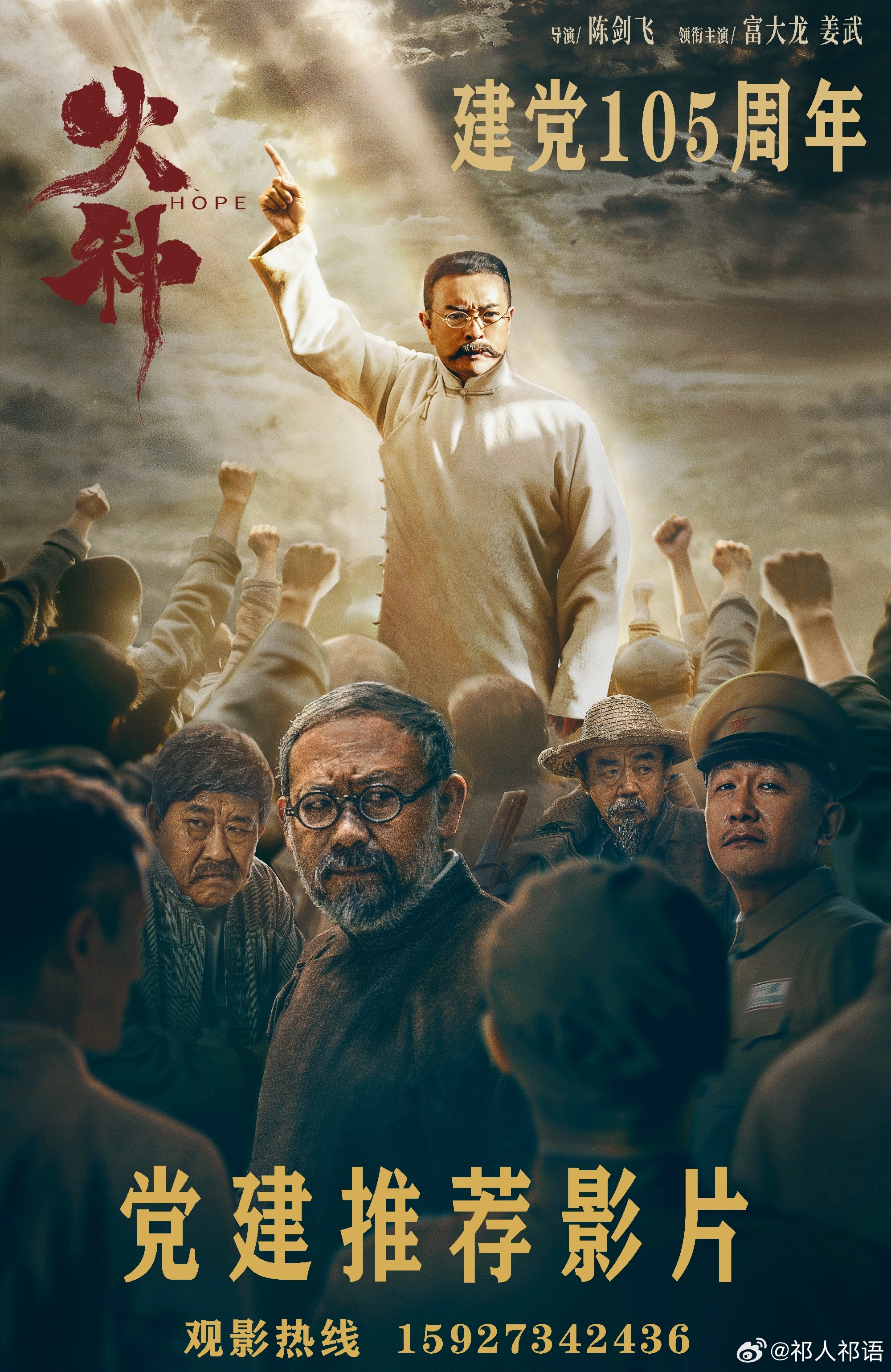最近看了一部电影叫《火种》,是关于革命先驱李大钊同志的,影片聚焦1919年至1927年李大钊同志的革命活动,反映了他早期传播马克思主义,引领青年学生发起五四运动,参与组建中国共产党,推动国共合作,同北洋军阀斗争等革命事迹。影片也涉及了陈独秀,毛泽东等早期革命领袖的活动,刻画了中国共产党成立初期的群英谱。电影表现的手法也有独到之处,既有教育意义,又引人入胜。今年恰逢我们党成立105周年,红军长征胜利90周年,又是我们开展政绩观学习教育的重要时期,我觉得这部片子是很好的教育意义。我们单位准备组织全体党员观看。我检索了一下,发现这部电影也有观影热线。经咨询,如果集体组织观看,可以打热线电话15927342436,他们可以就近安排。
