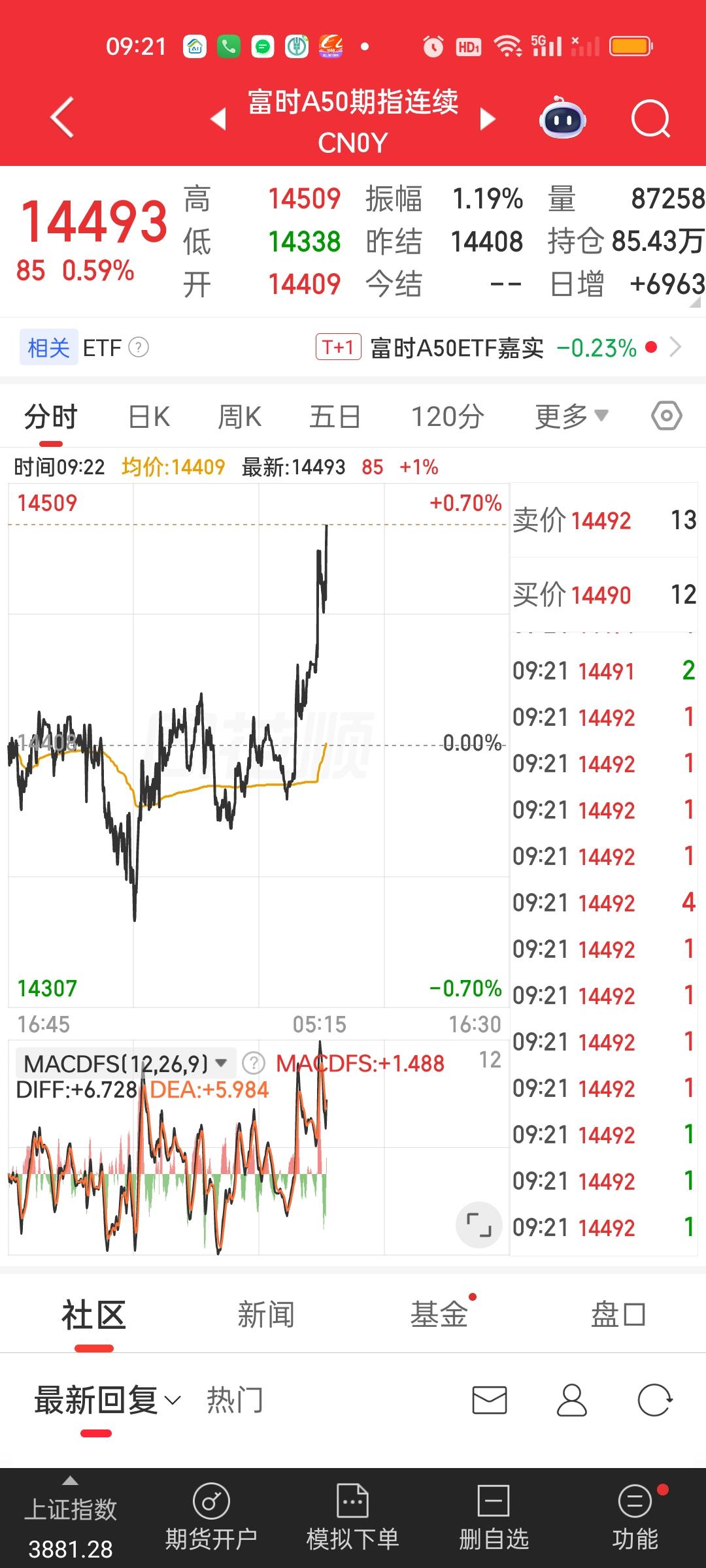 石油开始暴跌,指数立刻上涨,好一个跷跷板,玩的真的溜。今天情况看上去非常不错,人民币也在升值,最起码从外围目前的情况来看还是可以期待的。开盘以后先观察一下,可能还有冲高的过程。耐心等待下。港股这边涨幅还是挺大的,我们的指数很大概率也会高开,不管是上证指数,深圳成指还是其它指数。