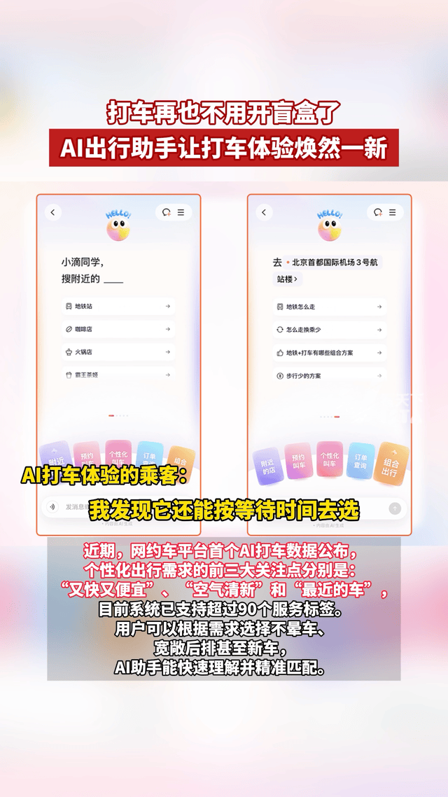 网约车软件能不能都按这个方向卷!AI出行助手一句话拆解需求,对比传统盲选式叫车优势明显。近期公布的用户数据显示“又快又便宜、空气清新、不晕车”成用户核心诉求,90多服务标签精准匹配,晕车、带娃、商务场景全拿捏。不用反复沟通、不用委屈将就,随口说需求就能安排到位,甚至还能便宜摇到豪车,这种被贴心照顾的出行体验,堪称把尊享待遇搬进日常。这种出行搭子我给到夯在出行圈体验了一把有助理的感觉