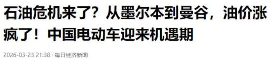中国再次撞大运!石油危机席卷全球,这一次,时代的答案是新能源   中东局势持续升温引发的能源震荡,多家华尔街机构与 IEA 认为当前能源震荡具备第四次石油危机核心特征,处于准危机状态,这场危机没有丝毫缓冲余地,直接冲击全球民生与产业格局,而首当其冲受到深远影响的,便是百年未遇大变局的汽车行业。   可能很多人没意识到,这次石油危机不是虚张声势。2026年以来美伊冲突不断升级,伊朗和美以的军事对抗已经波及石油生产和运输全链条。伊朗本土的石油日均产能已经缩减180万桶,占全球总供应量的1.8%。   更关键的是霍尔木兹海峡的航运受阻,这条承载全球34%原油贸易量的航道,通行效率直接下降60%,每天有450万桶原油贸易流被迫停滞。中东其他产油国也被动跟着减产,每天合计缩减300万桶产能。   IEA已经明确给出数据,3月份全球石油供应预计减少800万桶/日,而全球日均供需缺口达到900万桶,占全球日均消费量的9.3%。即便IEA协调32个成员国释放4亿桶战略石油储备,也只能日均补充300万桶,连缺口的一半都覆盖不了。   油价也跟着疯涨,WTI原油已经站稳100美元/桶,其中还有16到19美元是极端风险溢价,这个比例比历史同价位周期高出不少。油价一涨,全球燃油车市场直接被泼了一盆冷水。   以前大家买燃油车,顶多抱怨油费贵点。现在不一样了,油价持续高位,燃油车的使用成本直接翻倍。按年均行驶1.5万公里计算,燃油车一年的油费比纯电动车的电费多花8000块以上,再加上燃油车的保养费用,长期用下来差距特别明显。   全球汽车市场的需求已经开始转向。Edmunds的数据显示,3月初电动化车型的消费者搜索占比从20.7%涨到22.4%,和2022年油价冲击时的峰值差不多。越来越多原本观望的消费者,开始认真考虑换新能源汽车。   这一点,中国早就踩对了节奏。现在中国新车销售里,超过50%都是电动车或插电式混合动力车型,石油需求已经连续两年同比下降,基本避开了这次石油危机的直接冲击。   很多人说中国撞大运,其实根本不是运气。中国早就布局新能源汽车产业,比亚迪、蔚来这些品牌,不仅掌握了电池、电机、电控的核心技术,还建成了全球最完整的新能源产业链。   就拿电池技术来说,比亚迪的第二代刀片电池,常温下5分钟就能充到70%,极寒环境下充电时间也不会明显延长,彻底解决了以前电动车的续航焦虑。这种技术优势,让中国新能源汽车在全球市场都有竞争力。   反观欧美和日系车企,以前一直依赖燃油车技术,转型新能源的步伐特别慢。这次石油危机一来,他们的燃油车销量大幅下滑,再想加速转型,已经落后中国一步。   中国新能源汽车的出口也迎来爆发。2025年全球电动车累计替代石油消耗达每日170万桶,相当于伊朗出口量的70%。中国新能源车企借着这次石油危机,正在快速抢占欧洲、东南亚等市场,逐步蚕食日系车的份额。   可能有人会问,万一油价降下来,新能源汽车会不会不行?答案是不会。这次石油危机让全球各国都意识到能源安全的重要性,中国70%的石油依赖进口,其中70%消耗在交通领域,发展新能源汽车是必然选择。   而且中国的发电自给率很高,水电、风电、光伏装机量都是全球第一,电能替代燃油完全具备战略自主性。就算油价回落,新能源汽车的使用成本优势和技术优势依然存在。   IEA原本预测全球石油需求2029年见顶,现在看来,这次石油危机可能会让这个时间提前。各国企业车队的电动化进程会加速,新能源汽车的普及已经成为不可逆的趋势。   说到底,这次石油危机不是偶然,它是全球能源转型的一个催化剂。而中国,恰好抓住了这个机会,提前布局新能源产业,不仅避开了能源危机的冲击,还在全球汽车产业变局中掌握了主动权。   这不是运气,是中国提前谋划的结果。当全球都在为石油供应焦虑时,中国已经走出了一条属于自己的新能源之路,这就是时代给出的最好答案。