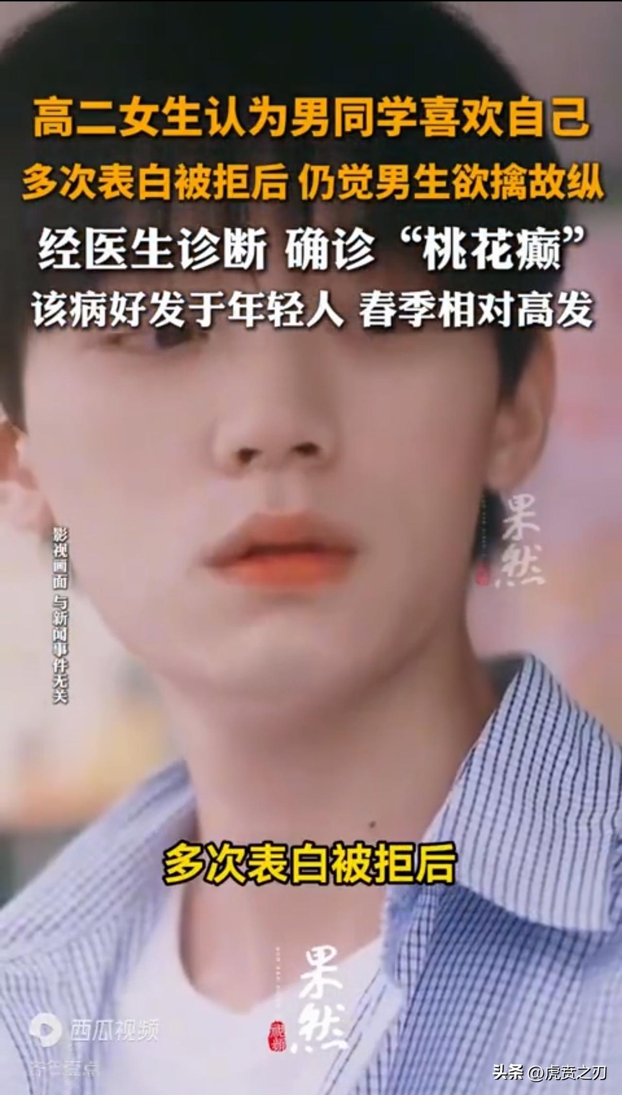 桃花癫病症,笑死个人,前几天福建有一名18岁男生犯了桃花癫,如今江苏一名17女孩