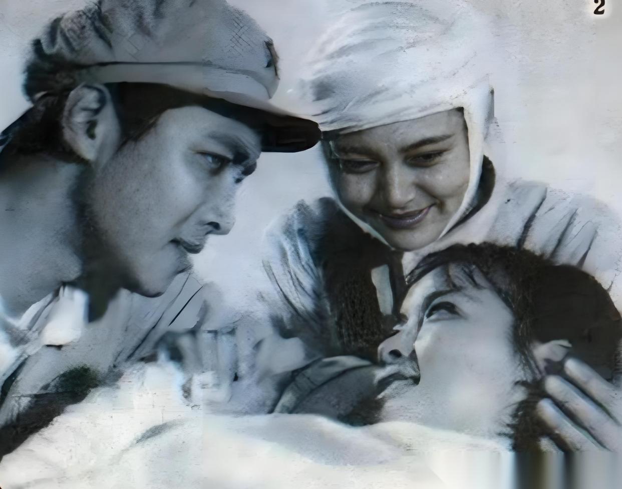 刘晓庆当年因为电影《小花》里的何翠姑一角一炮打响。何翠姑其实才是真实的小花,何翠姑是一名忠诚坚定、勇敢坚强、淳朴朴实的共产党员,为救助伤员抬担架上山不惜自身受伤,跪爬台阶的场面令人感动,震撼人心;陈冲扮演的小花不是真正的那个小花,当时陈冲扮演的小花还是普通老百姓,是一个清纯可爱的素人女孩;唐国强扮演的解放军军人赵永生是真小花何翠姑的哥哥。陈冲是个“冒牌”的小花,电影最后展示真相,或许小花真假已经并不重要,体现出军民鱼水情深,革命同志情深似海的情感,无论真假小花是谁,赵永生、小花和何翠姑都亲似一家人。 这部电影三大主角陈冲、唐国强和刘晓庆,依次排列,陈冲是绝对的女一号,刘晓庆为女二;三位演员表演感情真挚,朴素到位,各有各的闪光点。这部电影更是成就了荧幕处子秀的陈冲,陈冲甚至说一飞冲天也不过分;还有早就成名帅气阳光的唐国强,勤奋努力的拼命三娘刘晓庆;陈冲、唐国强、刘晓庆是响当当的中国电影界的三大巨星,当之无愧。《小花》电影拍的很好,很好看,余味悠长,这部影片很成功。 图一二三为刘晓庆一马当先跪抬担架,抬头看天,目光坚毅通透。图四为电影结尾时刘晓庆负伤,三人已知真相的眼神对视饱含深情。 电影小花 唐国强