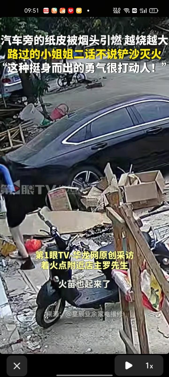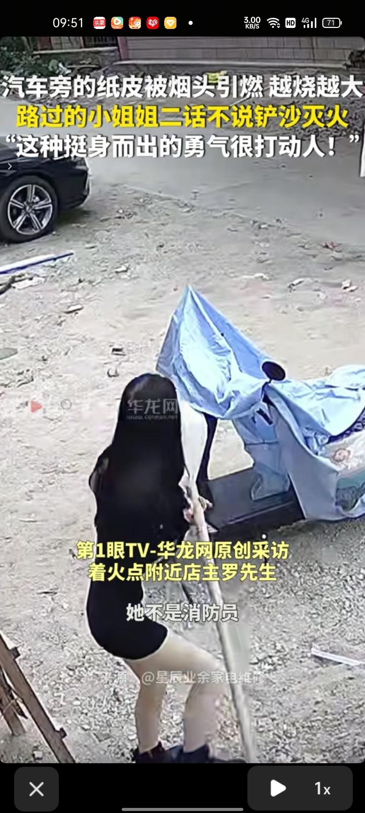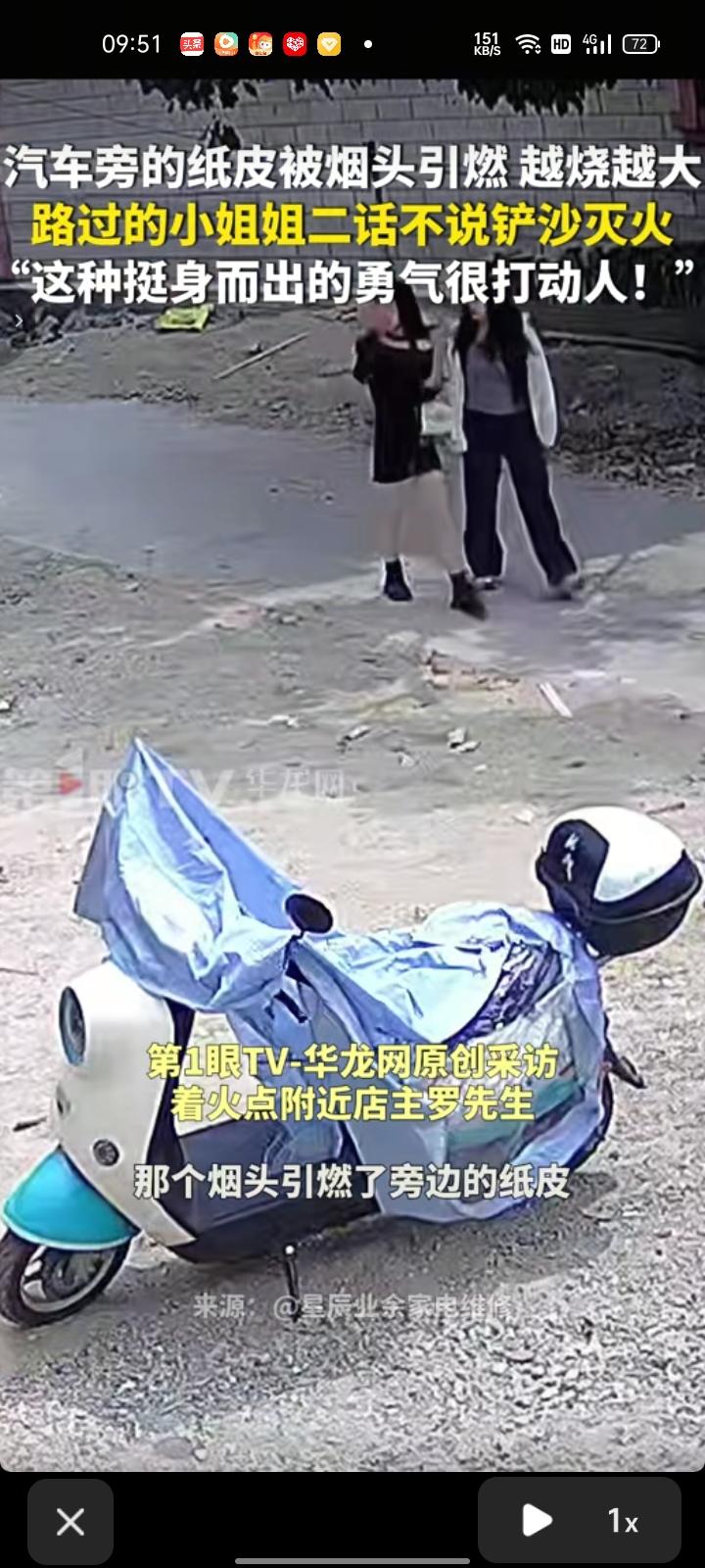 3月20日,广东广州。汽车旁的纸皮被烟头点燃,越烧越大,路过的两位女子看见后,二话不说就铲沙灭火。要是烧到了汽车,可能会发生严重后果。她们不是消防员,是在看到危险的时候,能够挺身而出的人。