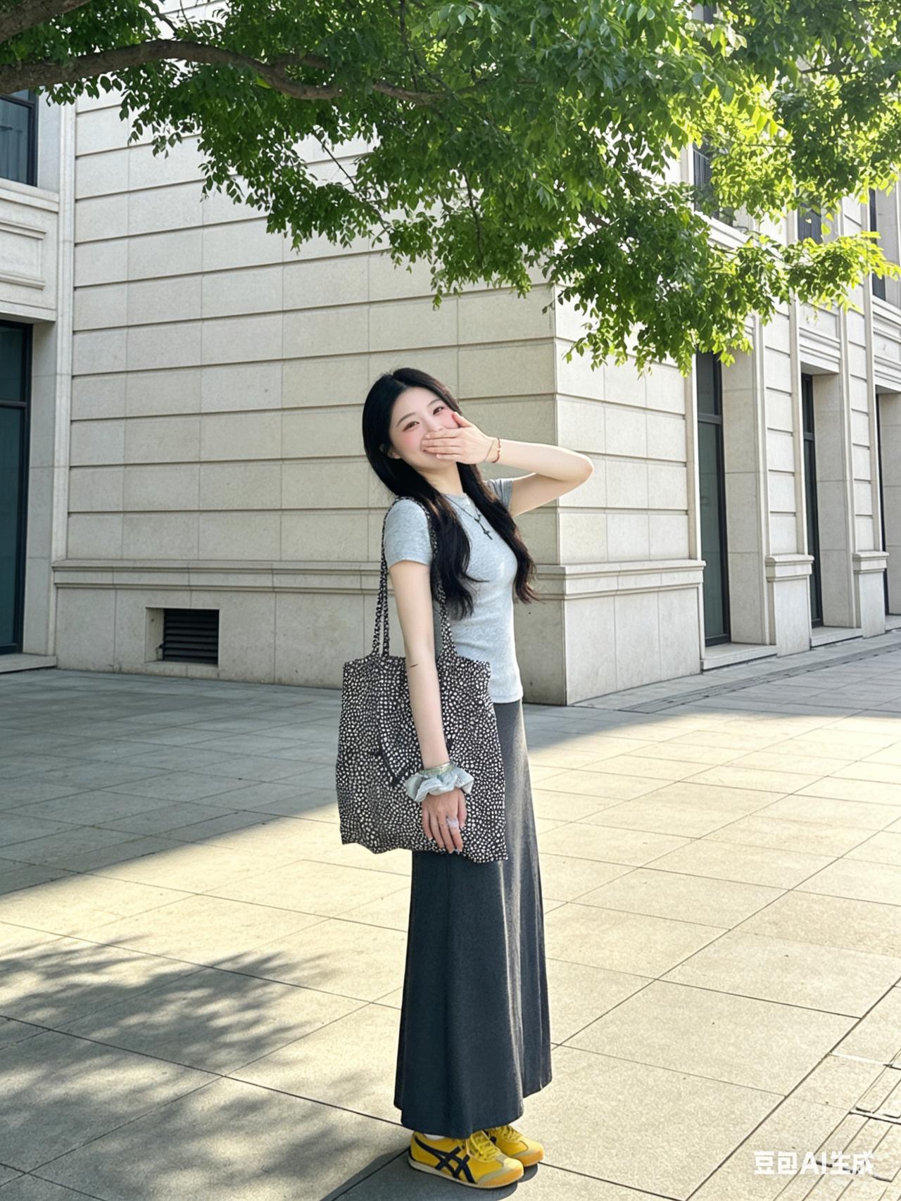 怎样穿搭能显示出温柔的女生气质? 元气少女穿搭指南:灰色T恤+黑色长裙+黄色运动鞋,活力满满!🌞👗👟