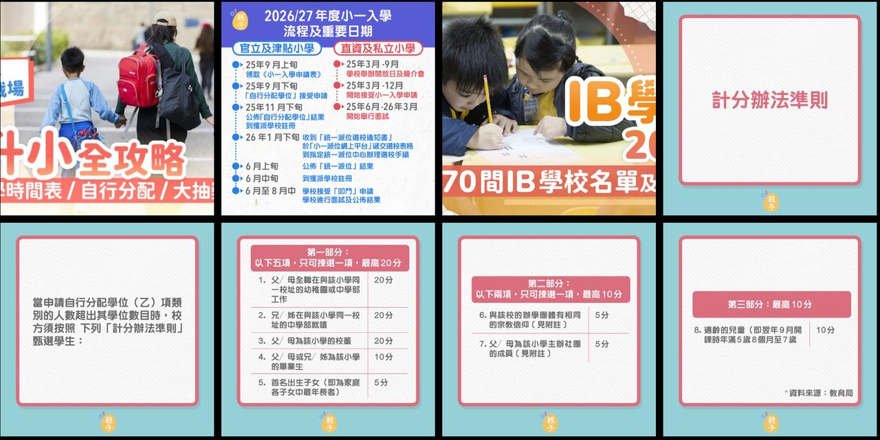 2026 香港小一全攻略|計分規則 + 時間軸,70 間 IB 名校任你選! 「香港小一入學太複雜,又趕上殺校潮,孩子能讀上學嗎?」 其實不用過度焦慮 ——2026/27 年度香港小一入學雖有挑戰,但規則清晰、時間節點明確,只要抓準關鍵信息,就能讓孩子順利入讀! ✅ 先看時間表:從 9 月領表到 6 月派位結果,每個節點都有明確要求,錯過一個就可能錯過學位 ✅ 再懂計分規則:自行分配分數直接決定錄取與否,搞懂加分項,提前準備就能拉滿優勢 ✅ 多個選擇路徑:除了官津 / 資助學校,還有 70 間 IB 名校可選,國際化課程滿足不同教育需求 今年小一適齡人口創新低,對新來港家庭來說,不是「擠破頭」,而是「有得揀」! 無論是自行分配、統一派位,還是衝刺 IB 學校,跟著攻略走,一步一步來,孩子的小一入學之路一定能順利通關! 香港小一入學 香港升學焦慮