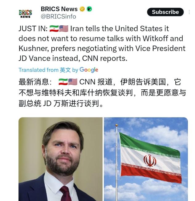 伊朗这一手非常的高明!美媒披露称,伊朗点名美国副总统万斯,把万斯列为可谈判的对象! 3月25日,根据美国CNN报道,美媒称,伊朗不愿与威特科夫、库什纳谈判,而更倾向与副总统万斯接触。当然,美媒的消息是否为真还不得而知,但是就政治微操而言,则极为精妙。 伊朗为什么偏偏挑中万斯?威特科夫和库什纳二月份跟伊朗谈过,结果会谈才结束几个小时,德黑兰就挨了军事打击。这在伊朗看来就是典型的背信弃义,谈得好好的转头就动手,这种谈判对象谁敢信?所以伊朗直接给他们贴上了“不可信”的标签,说啥也不愿意再跟他们坐在一起。 万斯就不一样了。这场冲突打到现在已经26天,美伊双方导弹无人机你来我往,美军在中东的多个基地被伊朗精准打击,连F-35这样的先进战机都受损了。仗打到这个份上,美国其实比伊朗更着急。 特朗普急着从中东抽身,不想让这场战争影响自己的政治布局,再加上国际油价飙升,美国国内民众怨声载道,经济压力越来越大。万斯在这场冲突中基本保持沉默,没怎么公开表态,反而让人觉得他可能是个务实派。 有消息说万斯从一开始就对向伊朗动武持保留态度,现在把他推到外交谈判的前台,其实也在情理之中。 万斯3月23日刚和以色列总理内塔尼亚胡通了电话,专门讨论了重启美伊谈判的相关尝试。这说明万斯已经在为谈判铺路了。伊朗看中的就是这一点——万斯既能跟以色列沟通,又不像特朗普那么反复无常,通过他传递信息相对稳定可靠。伊朗这是想绕过特朗普身边那些激进派,直接跟相对理性的人打交道。 从战术层面看,伊朗这一招有几个精妙之处。第一是分化美国内部。特朗普政府内部本来就不是铁板一块,有主张强硬打到底的,也有想尽快结束战争的。伊朗点名要万斯,等于公开表示“我们只跟你们政府里这个派别谈”,这无形中就给美国内部制造了矛盾。 第二是掌握谈判主动权。谈判还没开始,伊朗就先定了规矩——谈可以,但得按我的条件来,人得我挑。这让伊朗在心理上就占了上风。 第三是测试美国诚意。伊朗放出这个风声,看看美国会怎么回应。如果美国真的派万斯来谈,说明他们确实想结束战争;如果拒绝,那正好证明美国没诚意。 当然伊朗也很聪明,官方层面坚决否认谈判传闻。议长卡利巴夫亲自在社交媒体上发声,说相关的谈判传闻都是虚假新闻,目的就是为了操纵金融和石油市场。这手玩得漂亮,既通过非正式渠道传递了信息,又在官方层面保持了强硬姿态,进退自如。 伊朗点名万斯,还有一个深层考虑——层级对等。万斯是副总统,这个级别足够高,能拍板做决定;但又不像总统那么敏感,万一谈崩了还有回旋余地。伊朗可能觉得,跟万斯谈成的协议,特朗普更容易接受;而如果跟特使或总统女婿谈,反而可能被特朗普推翻。 这场博弈到现在已经不只是军事对抗,更是一场外交心理战。美国频繁释放和谈信号,某种程度上像是一场精心策划的心理试探,意在探测伊朗内部的反应与分歧。 说到底,伊朗这一手的高明之处在于,它把谈判从“要不要谈”的问题,变成了“跟谁谈、怎么谈”的问题。通过点名万斯,伊朗实际上设定了一个谈判框架:第一,谈判对象必须是我们信得过的;第二,谈判必须在平等基础上进行;第三,美国必须放弃霸权思维。这些条件摆出来,美国接不接都难受——接了就得按伊朗的规矩来,不接就得继续打下去,而继续打对美国更不利。 有消息称美伊双方或于本周稍晚在巴基斯坦伊斯兰堡举行会晤,但即便是支持推动会谈的人士,也对其能否成行持怀疑态度。 伊朗外交部发言人巴加埃明确表示,过去几天确实有部分友好国家传递了美国想要谈判的诉求,伊朗也已按照自身的原则立场给出了回应,但自始至终都没有与美国举行过任何谈判。 这种表态很微妙——既没完全关死谈判大门,又坚持了自己的原则立场。 伊朗这一手政治微操,表面上是挑谈判对象,实际上是在争夺这场冲突的定义权和主导权。它告诉美国也告诉全世界:这场战争怎么打、怎么停、跟谁谈,都得伊朗说了算。