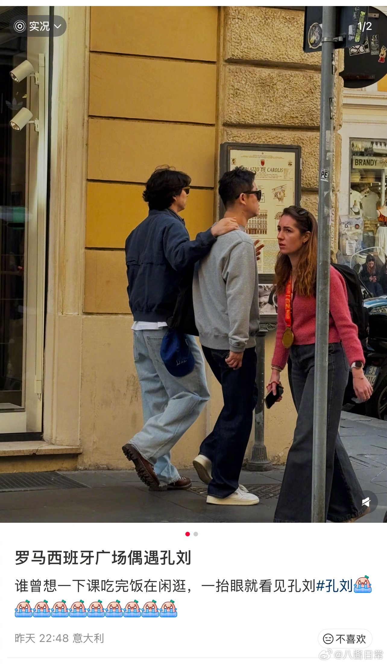 网友在意大利偶遇孔刘