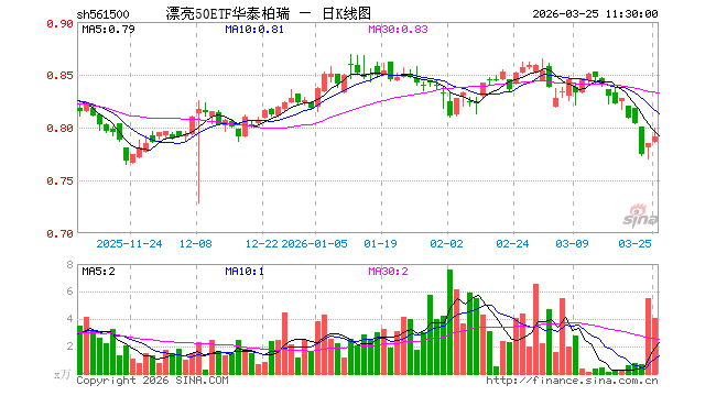 3月25日,截止午间收盘,漂亮50ETF华泰柏瑞(561500)涨0.76%,报0.791元,成交额326.92万元。漂亮50ETF华泰柏瑞(561500)重仓股方面,东方财富截止午盘涨0.10%,恒瑞医药涨0.63%,阳光电源涨0.67%,万华化学涨3.38%,迈瑞医疗涨0.70%,豪威集团涨1.16%,福耀玻璃涨1.47%,天孚通信涨5.49%,思源电气涨3.60%,生益科技涨1.37%。