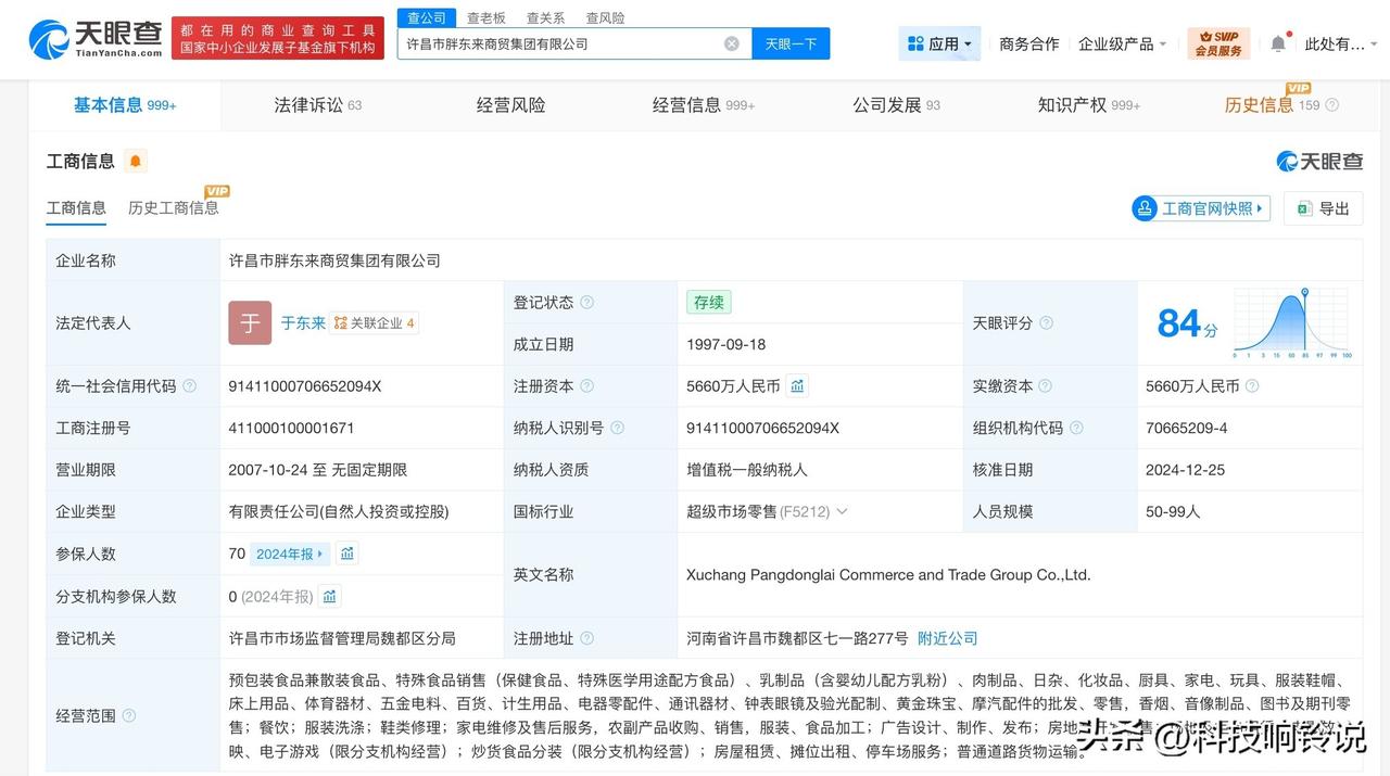 【胖东来申请注册胖东来海景商标】 天眼查知识产权信息显示,近期,许昌市胖东来商贸集团有限公司申请注册一枚“胖东来海景”商标,国际分类为餐饮住宿,当前商标状态为等待实质审查。 许昌市胖东来商贸集团有限公司成立于1997年9月,法定代表人为于东来,注册资本5660万人民币,经营范围含预包装食品兼散装食品、特殊食品销售、房地产开发销售等。股东信息显示,该公司由于东来、张春兰、于娟等共同持股。 天眼查信息:-details/tradeMark/89993528?tmClass=43