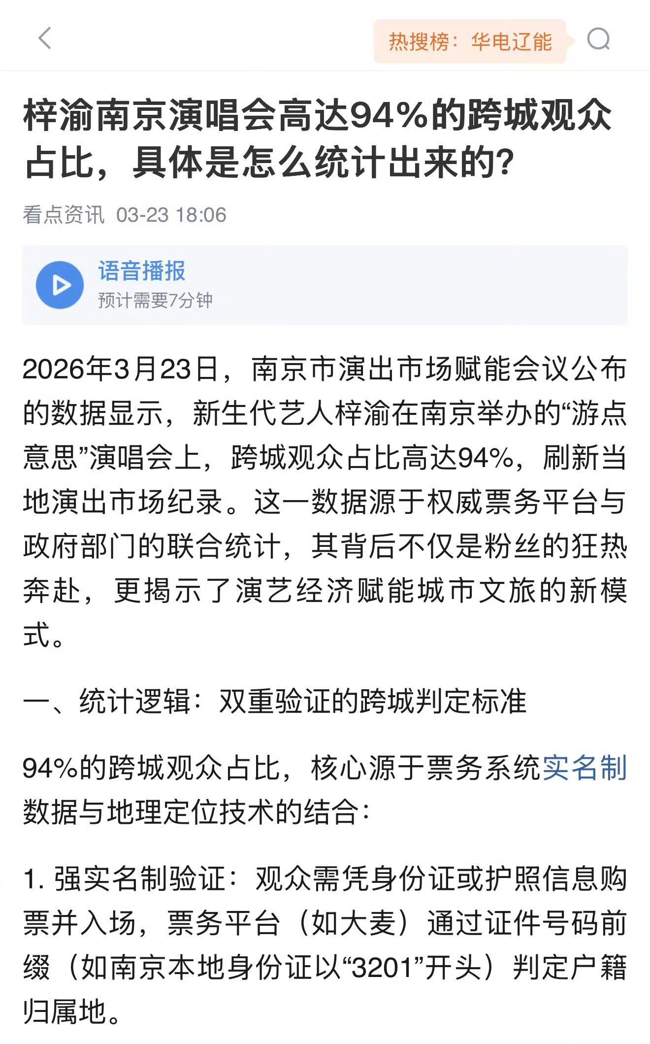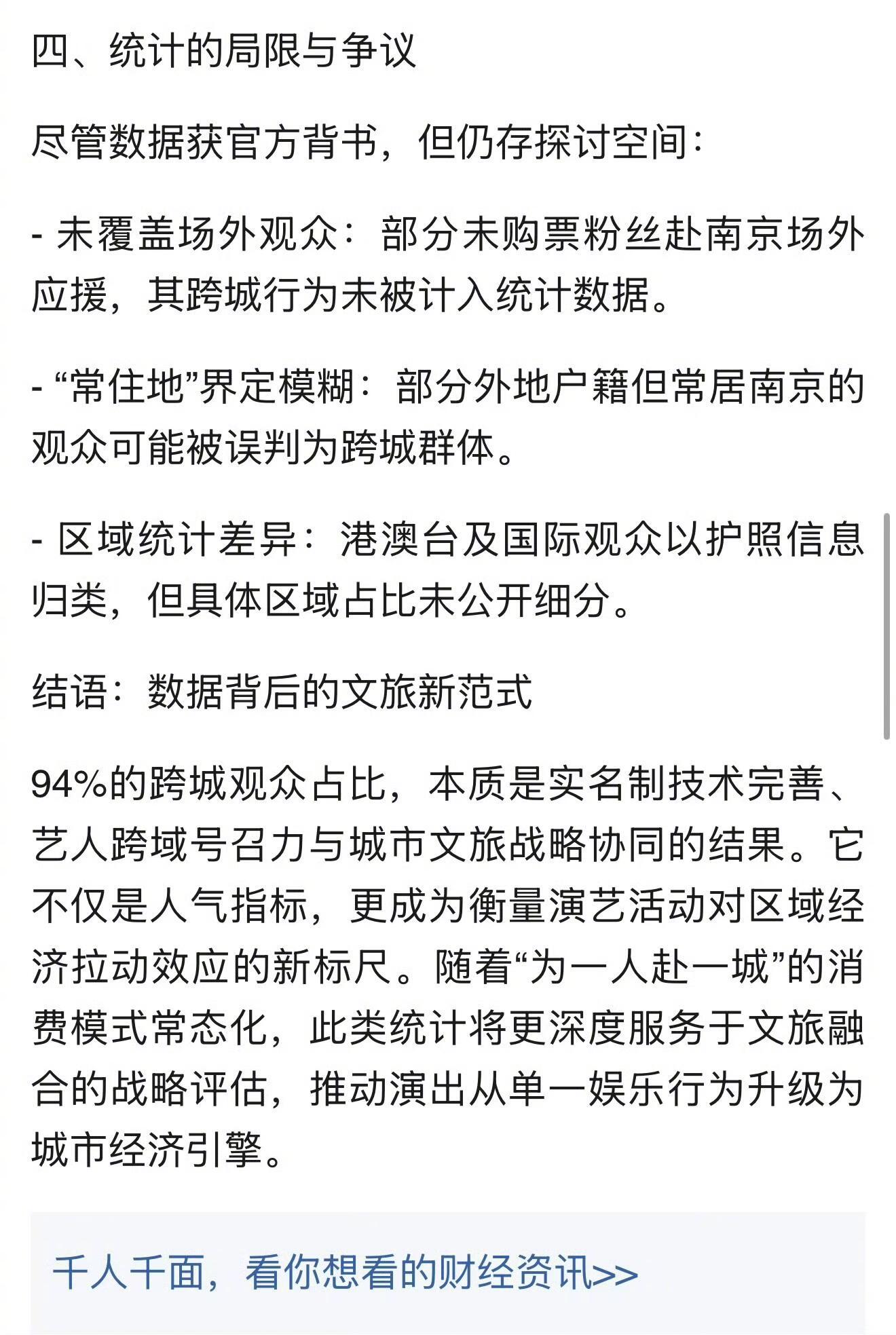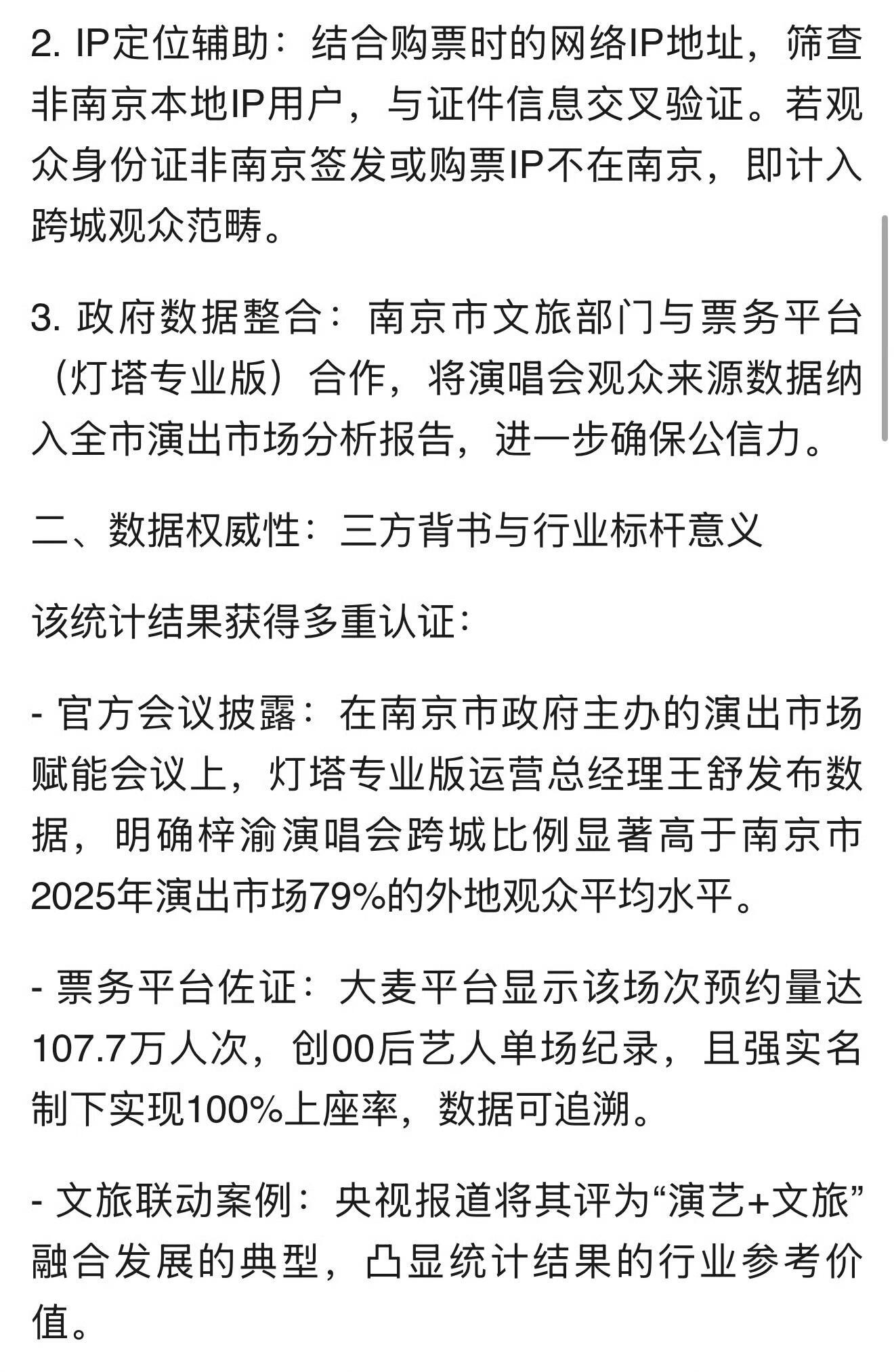 官方会议将梓渝案例作为标杆 官方会议将梓渝案例作为标杆,从舞台到城市,梓渝书写多元价值!梓渝开发个人IP《唱游地图》将演出与文旅效益、城市品牌进行深度融合,成为今后政策转型的依据,其“每城一非遗”模式被文旅部列为文旅融合模板。由于梓渝演出跨城观众比高达94%,焕发了跨城消费新活力,政策逐渐将“跨区引流”作为新的产业激励办法。以“强实名”形式及权威的可视化数据击碎行业数据泡沫