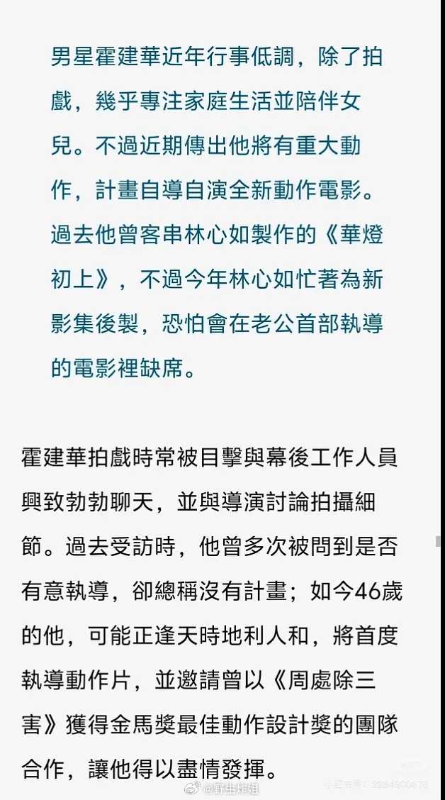 霍建华也要做导演了,自导自演的电影即将开拍,周处初三害班底保驾护航