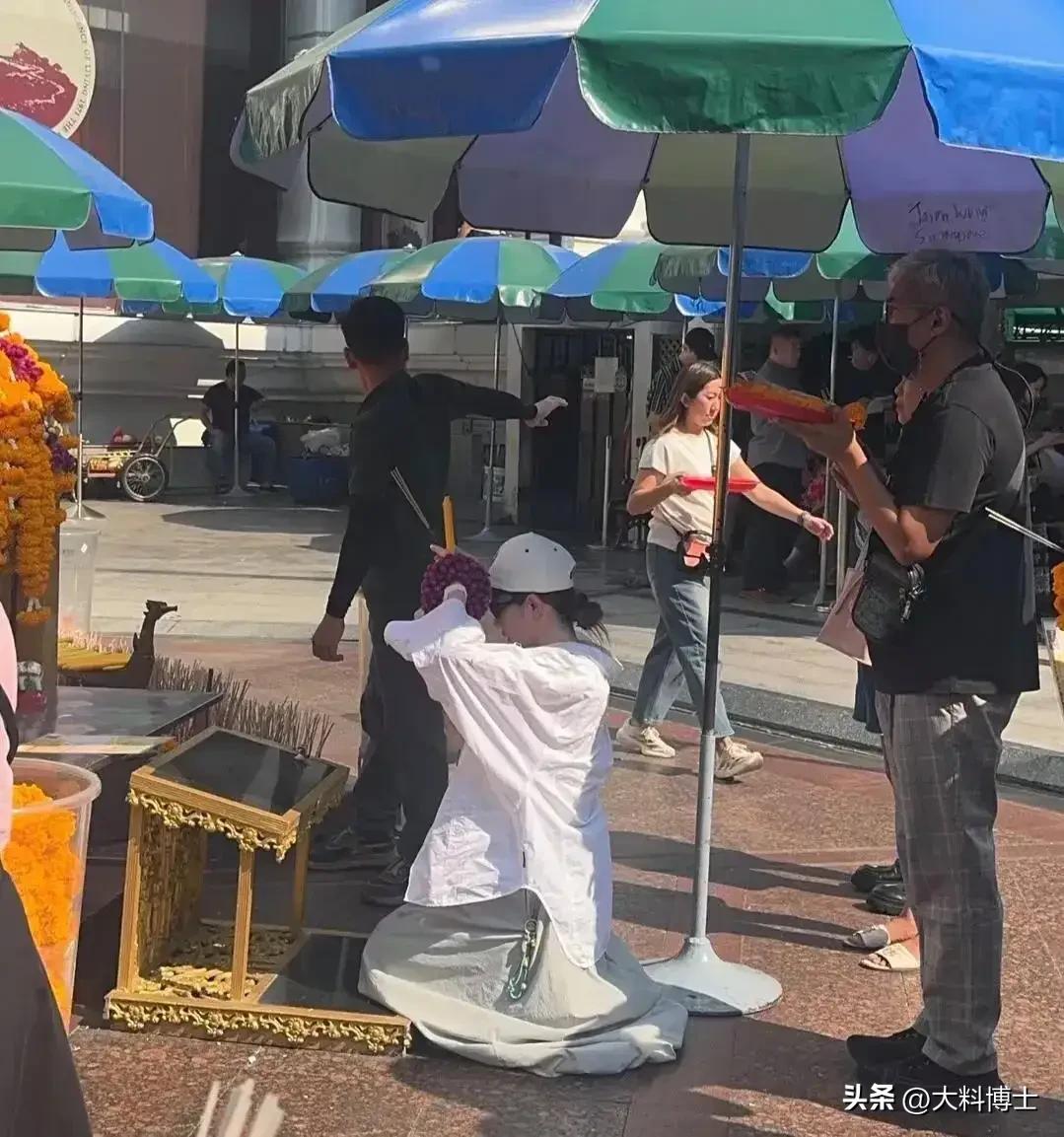 戚薇曼谷跪地祈福,与韩国老公漫步街头,没带孩子,享受二人世界