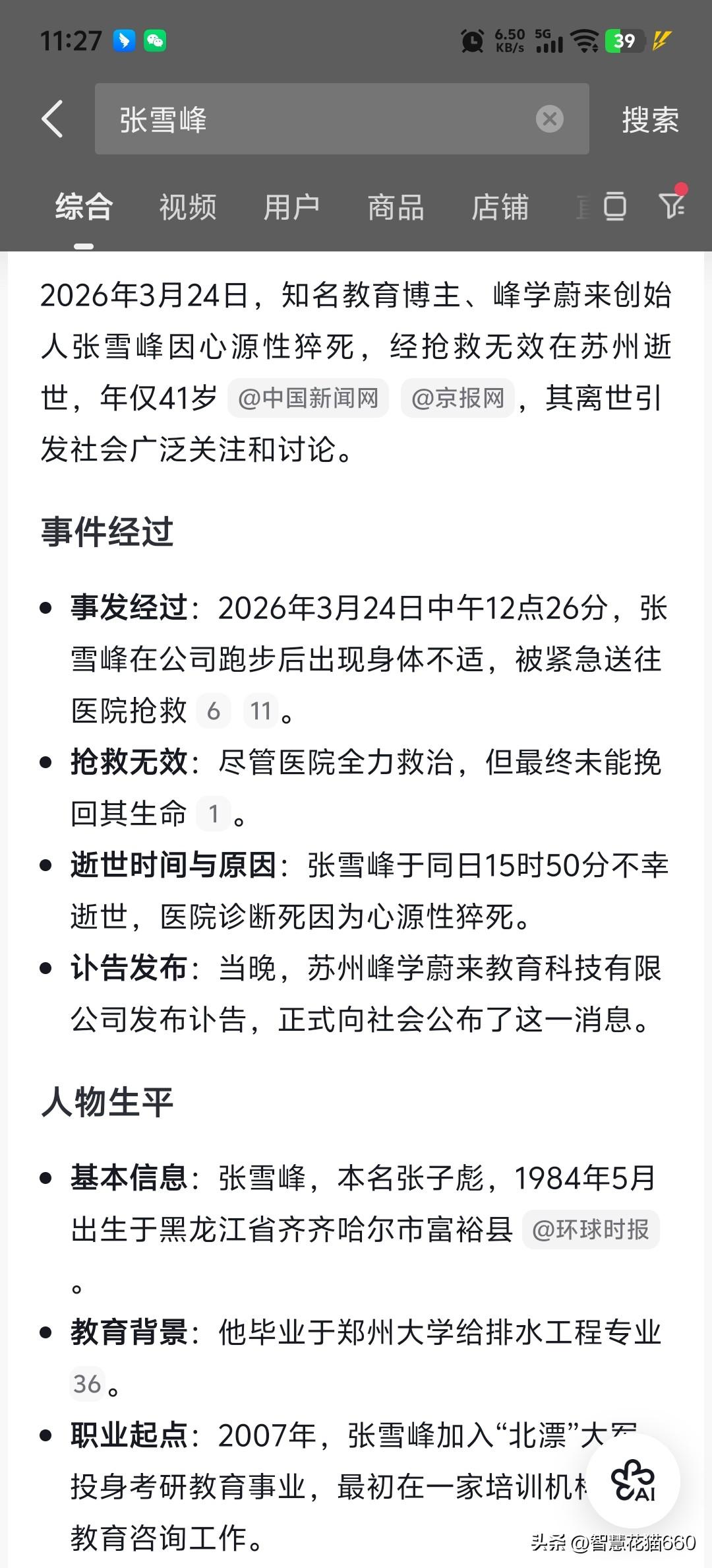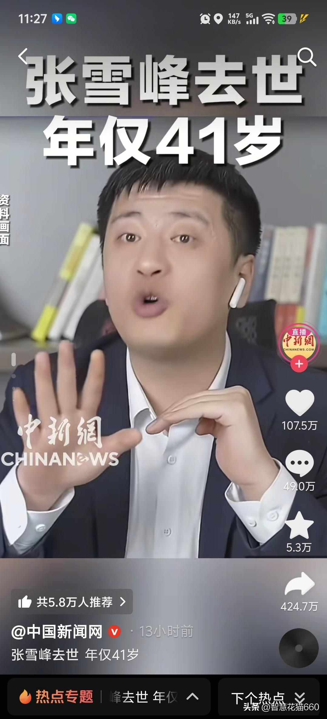 万万没想到,张雪峰老师去世了。本来还想着明年小孩快高考了,到时候去他的直播间听一听。没想到来的这么突然。