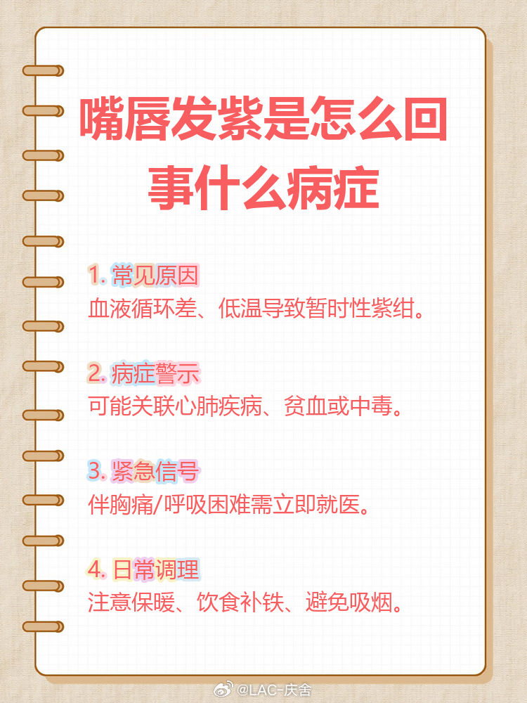 嘴唇发紫 心脏不好 别不当回事,很可能是身体在发出缺氧、心脏或心肺功能异常的信号少熬夜、别过度劳累、少烟酒,别总硬扛着身体不舒服及时体检,早排查早安心,健康真的不能赌大家平时一定要多注意这些细节,身体健康最重要