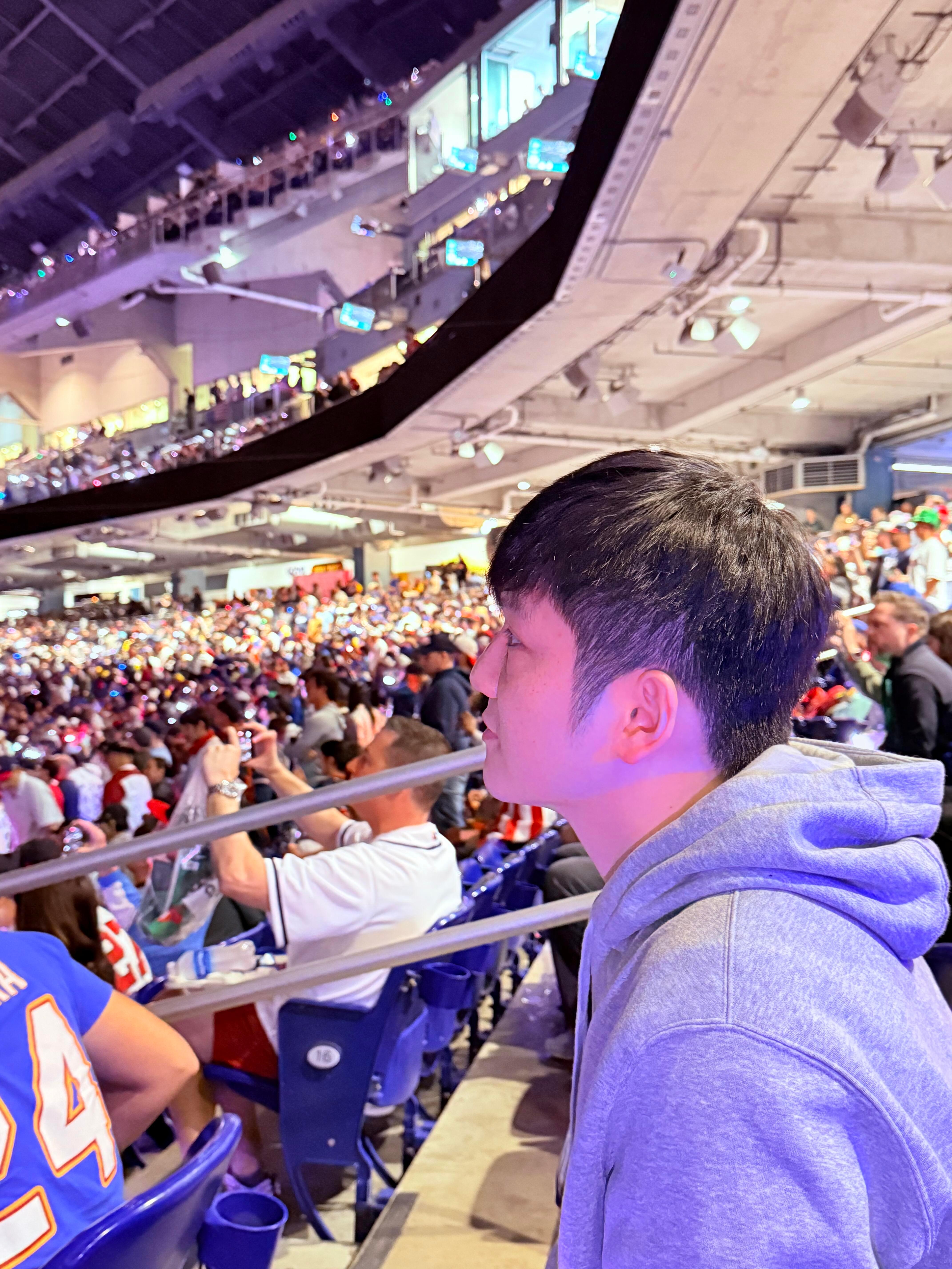 樊振东世界棒球观赛直拍图。期待MLB大联盟放一个冠军荣耀大使樊振东的vlog让我们同频一下!