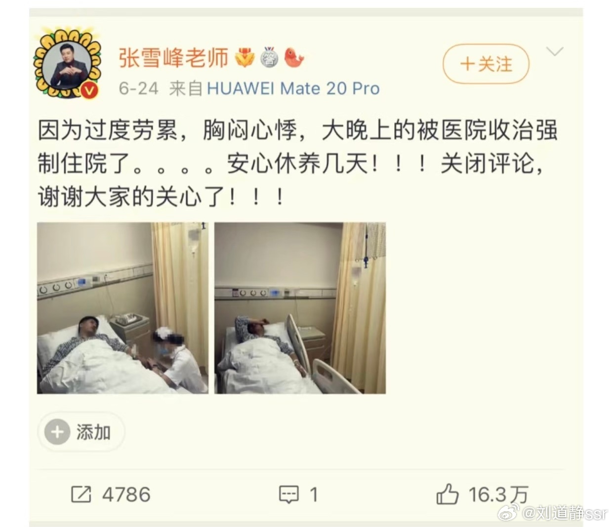 张雪峰 翻到这张旧照,才发现“安心休养”竟成了谶语。从2023年被强制住院,到如今猝然离去,他始终在为教育奔波,却没能好好为自己停下脚步。感谢你曾为万千学子拨开迷雾,愿天堂没有疲惫,只有安宁。🙏