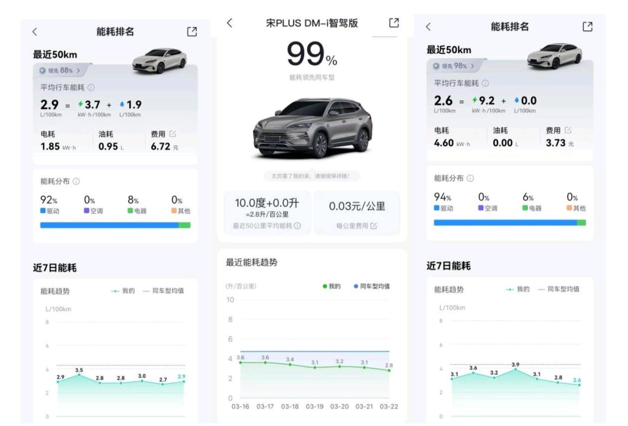上上次加油,中石化92号汽油6块多,23日加7.6元,24日涨到了8.5元,从过年到现在油价真是止不住的涨啊,这还得亏国家有兜底政策。不然真是受不了。 身边几个开比亚迪插混的又爽了,嘚瑟说,油价涨不涨和他们没啥关系,去年加了一箱油,今年还省一半,就怕油过期。真是冰火两重天啊。 看了一下,几个比亚迪插混车主的真实花费。开50公里,一个花了6.72元,一个花了3.72元,另一个平均一公里3分钱,50公里就花了1.5元。 拿秦Plus DM-i的210公里续航版来说,售价不到9万,配25度左右的电池,家用桩充电,0.5元一度电。充满一次花12.5元跑200公里,一年2万公里也就1250元。 紧凑级燃油车,油耗7.5,油价8.5,跑两万公里得花12750元。 差的真不是一点半点。 实在需要用油的场景,像比亚迪秦L,秦Plus,海豹06,海豹05这些车,亏电油耗2.6升,基本就是燃油车的三分之一。 插混的好处就是想用油用油,想用电就用电,很自由,插混从从容容游刃有余。 而且综合续航也是插混的优势,像比亚迪秦L,综合续航能干到2145公里,从北京到上海,中间也用不着再加油充电。 油价上涨的时候就去充电,充电桩排队的时候就去加油,灵活的选项确实很好。 中东这一块的局势看起来一时半会还停不了,油价应该一时半会也降不下来,这种情况下,其实比亚迪插混就是不错的选项了。 关键是车不贵,没有太多门槛。平时用省钱,续航也长,加油加电都掌握在自己手上。油价的涨跌也就无所谓了。 不知道大家觉得比亚迪插混怎么样,在油价大涨的局面下,是不是挺有优势?【来自懂车帝车友圈】