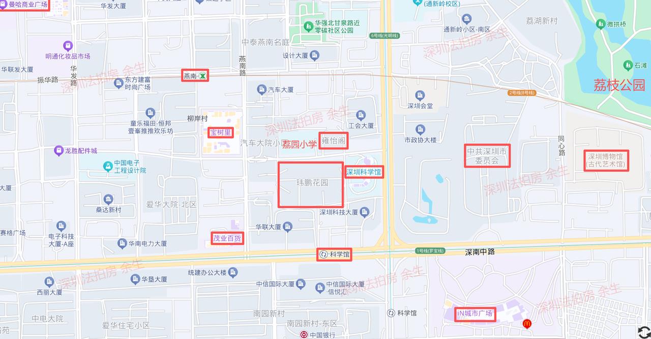 荔园+红岭,华强北·玮鹏花园6折拍卖,交通方便/位置好/南向看花园,101平3房2卫只要525万~ 玮鹏花园是由深圳玮鹏实业有限公司分三期开发的住宅项目,位于福田区振中路63号(上步中路与深南中路交汇处),地处华强北商圈核心地段。项目总占地面积约3.5万平方米,包含7栋高层建筑,总户数超1600户,容积率5.7,绿化率30%。分三期开发:一期(1-3栋)1991-1999年建成,主力户型76-105平方米二至三房;二期雍怡阁(4栋)2001年竣工,提供83-166平方米二至四房;三期时代都会(5-7栋)2003年交付,包含46平方米一房及77-101平方米二至三房。小区附带荔园小学和红岭本部学位,周边集聚华强北商业街、荔枝公园等市政配套。 近期在拍的101平3房2卫,现在起拍价只要525万,单价5.2万,6折拍卖,福田、罗湖周边的买家可以看过来~ 交通:300米可到科学馆地铁站(1、6号线),400米可到燕南地铁站(2/8号线);周边有深南中路、燕南路、振华路、上步路等 出行很方便~ 购物:地处华强北商圈核心位置,周边有宝树里、茂业百货和iN城市广场等多个大型购物中心~ 休闲:小区东侧是深圳科学馆;800米可到荔枝公园;900米可到深圳博物馆~ 学校:小区出来就是荔园小学玮鹏校区;1.7公里可到红岭中学(园岭校区)~ 玮鹏花园7号楼15D 面积:101.5㎡ 3房2卫 起拍价:525万 单价:5.2万 学校:荔园小学玮鹏校区,红岭中学园岭校区 开拍日期:4月29日