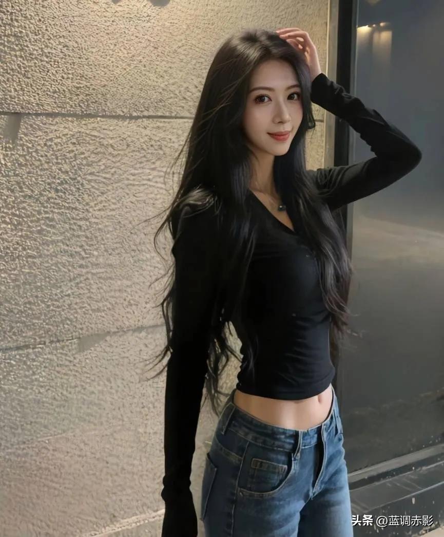都市街头,黑发美女,自信微笑,时尚穿搭