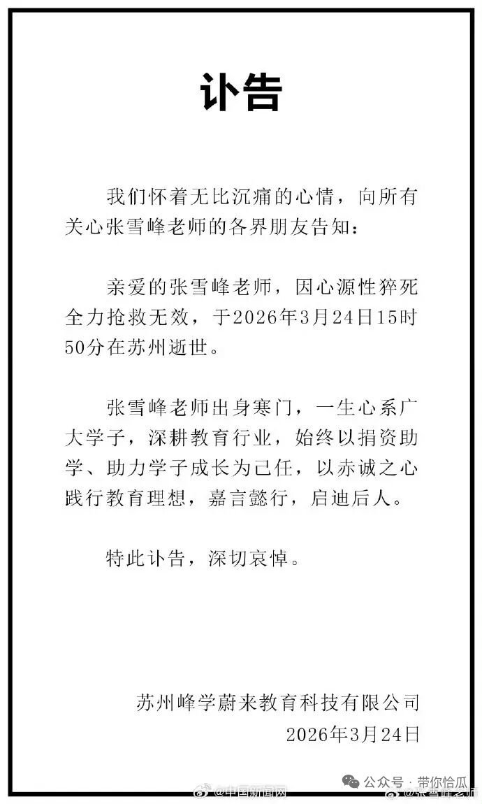 张雪峰员工 上四休三张雪峰的公司福利待遇已经秒了很多企业了上四休三!周三固定休息,周末双休员工结婚给包大红包,生一孩给2W,生2孩给4W年终奖平均每人6W,而且节假日都有礼包和超长假期,而他自己却每天超负荷工作,张雪峰微博说得最多熬夜工作作息不规律加上超负荷运动量把身体透支空了,张老师的离去,大家多关照自己的健康状态。