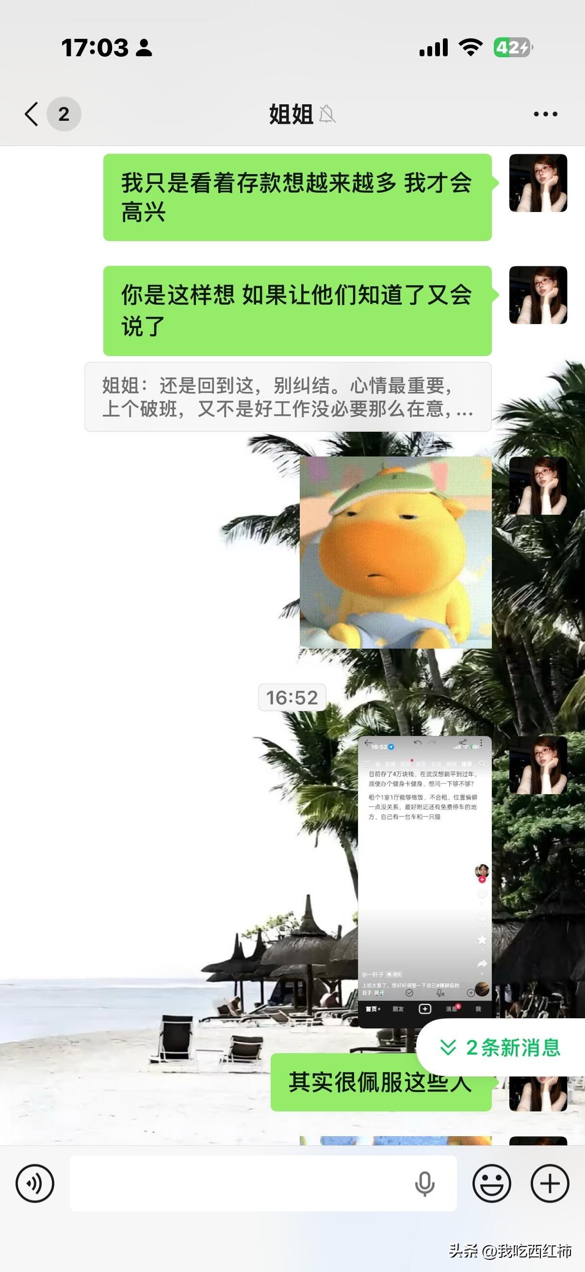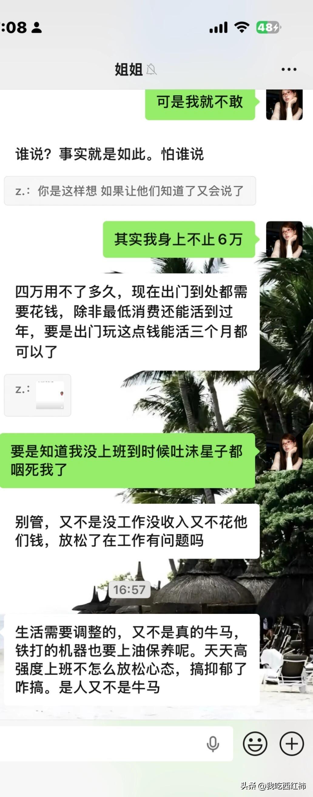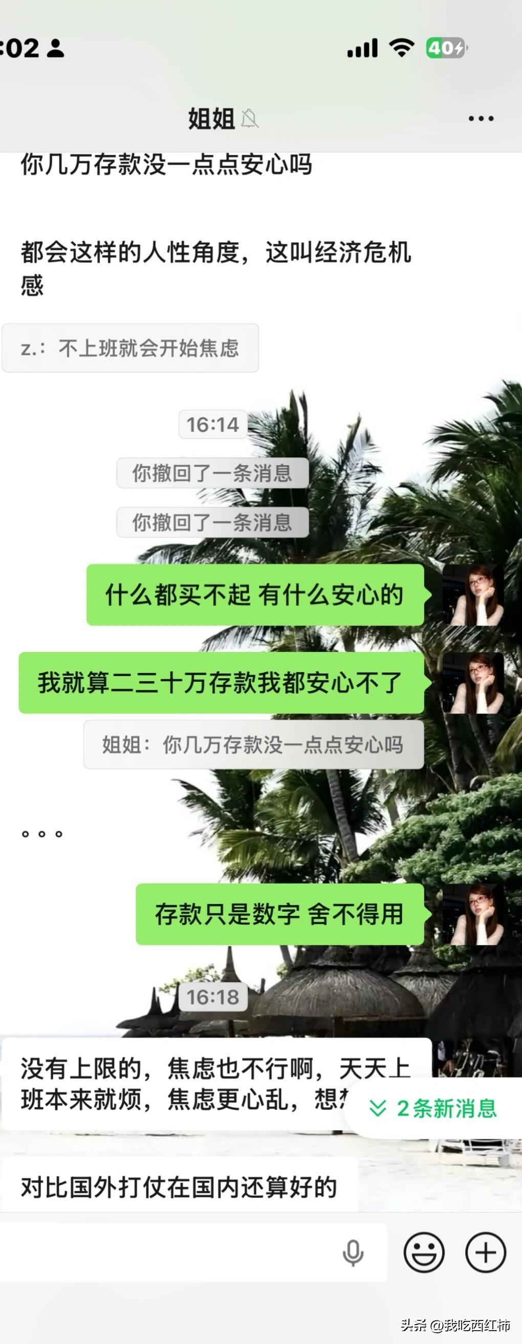 求求大家给我个建议吧 真的好累啊 出社会上班7年了一直当牛马 虽然中间也换过几次工作 都是骑驴找马 没有间隙 这个工作上了三年了今年第四年去年一直想离职 但是也不敢离职 不知道攒钱的人是不是跟我一样的舍不得花 花了就很愧疚 真的攒钱攒魔怔了 因为我一直想攒钱买房 舍不得花 上班真的太压抑了 我的工作早九晚九 上12个小时 工资平均5500-6000左右 一个月四天休息 现在今年改革了工资变低了 想离职 但是又害怕离职找不到工作 因为到处都是大环境不好 找不到工作 身边声音太多了 我看不清 想找你们帮我支支招