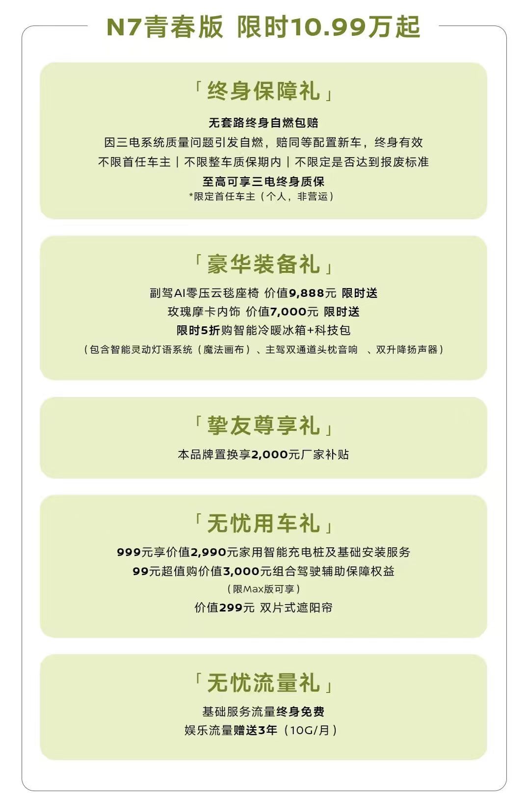 真正的科技平权,从来都是让优质科技不被价格定义,让每一份预算,都能匹配到高价值的科技体验,而不是让普通人对着高端配置望而却步。东风日产N7青春版10.99万起,直接颠覆行业认知:把行业首创的AI零压云毯座椅、全域智能防晕车技术,还有独家四针刺电池安全认证这些高端配置,全变成10万级的标配。从舒适驾乘到硬核安全,全维度拉满科技体验,年轻人不用硬扛高预算,就能享受前沿汽车科技红利。这不仅是产品的胜利,更是科技普惠的初心落地,让汽车科技真正服务于人,让平权成为出行的常态。年轻人的不将就N7青春版刚刚好