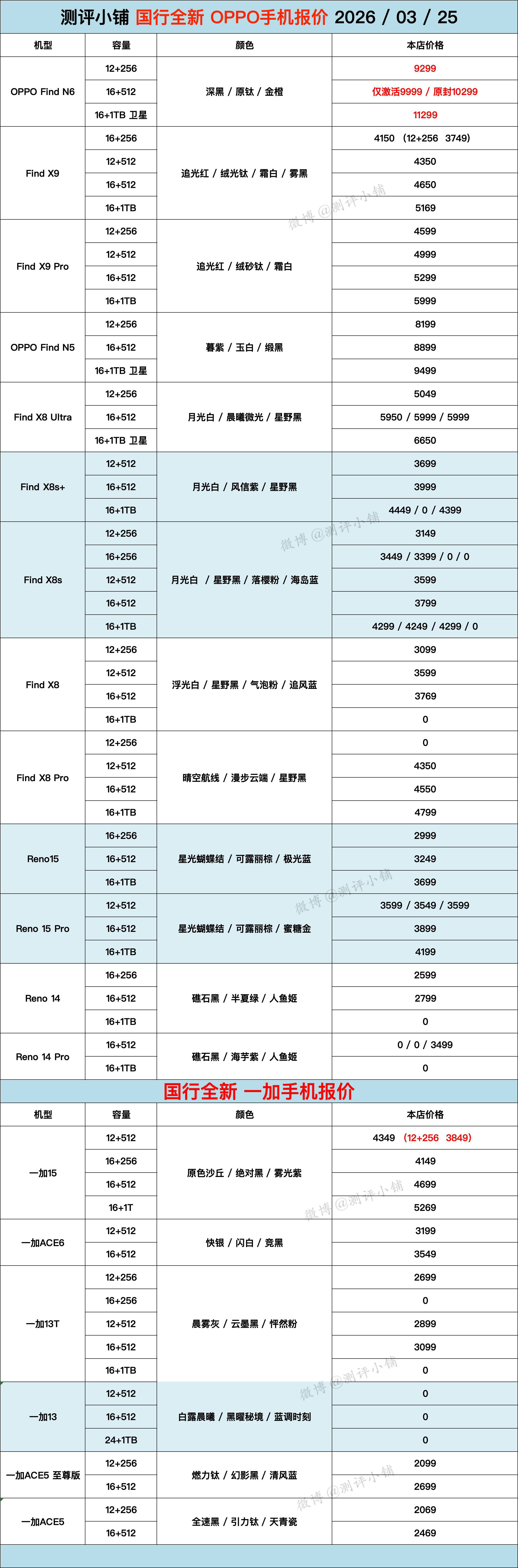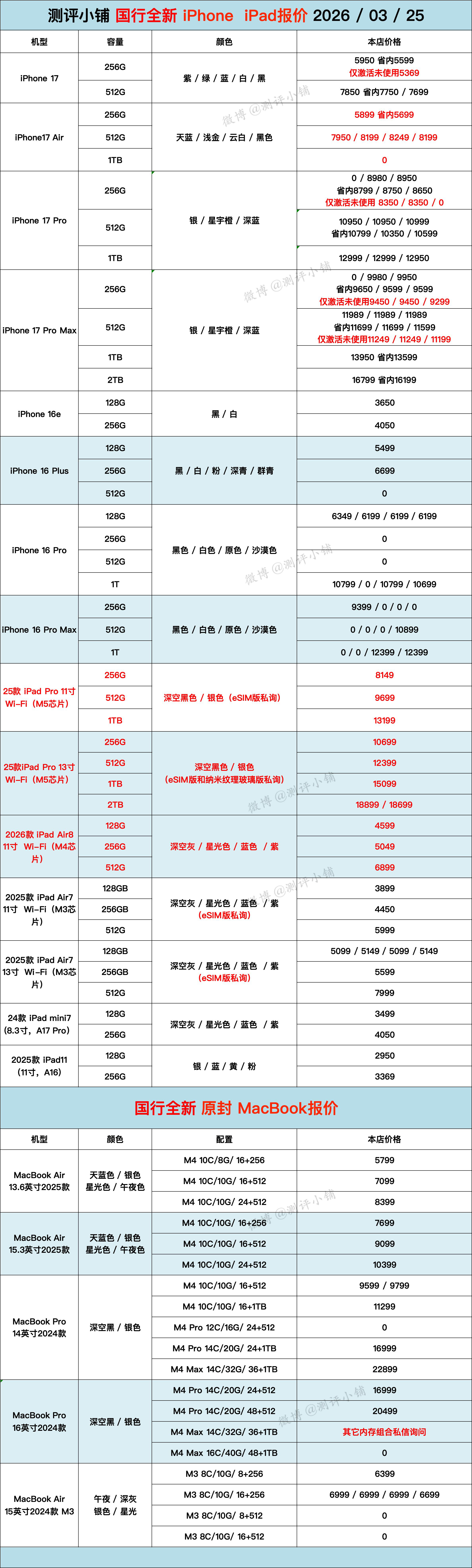 03-25国行全新机,iPhone17系列,华为Mate80系列、Mate X7,小米17全系列,红米K90,荣耀500等更新。