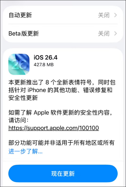 3月25日消息,苹果发布iOS26.4正式版更新,版本号为23E246,本次升级带来多项功能优化与体验提升,重点聚焦影音娱乐与系统体验,但并未实装由谷歌GeminiAI驱动的Siri新功能。