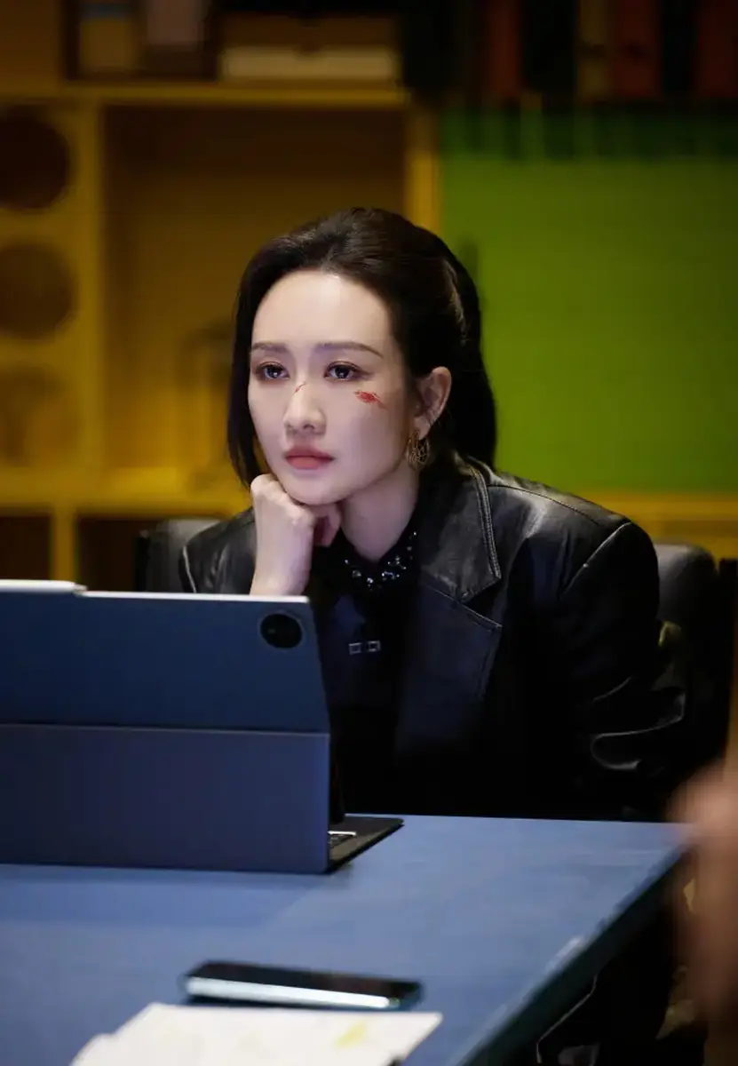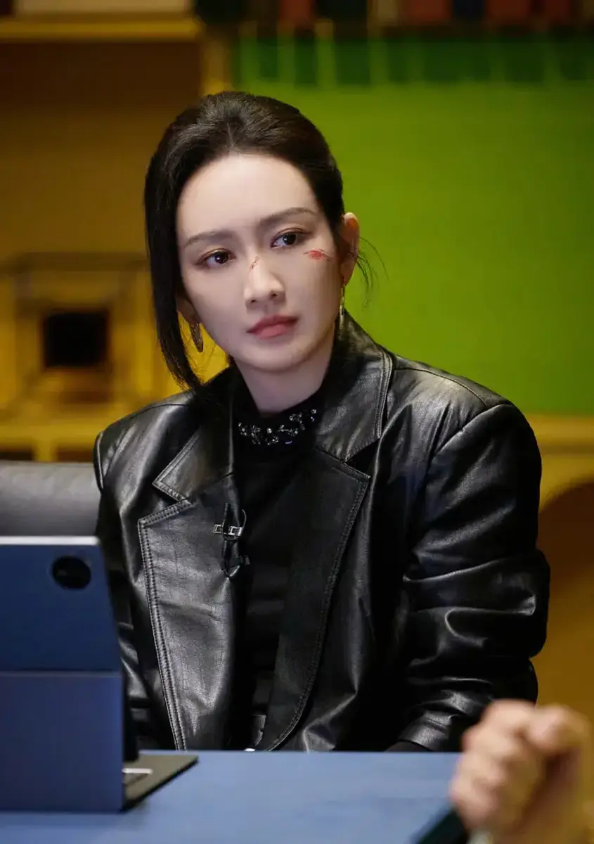 王鸥一身黑衣飒爽帅气 脸上化擦伤妆楚楚可怜