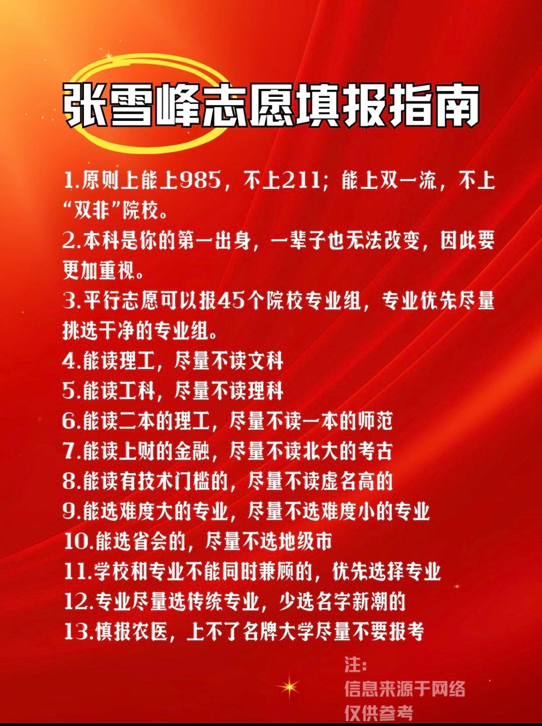 6.理工科优先选专业,文科优先选学校。