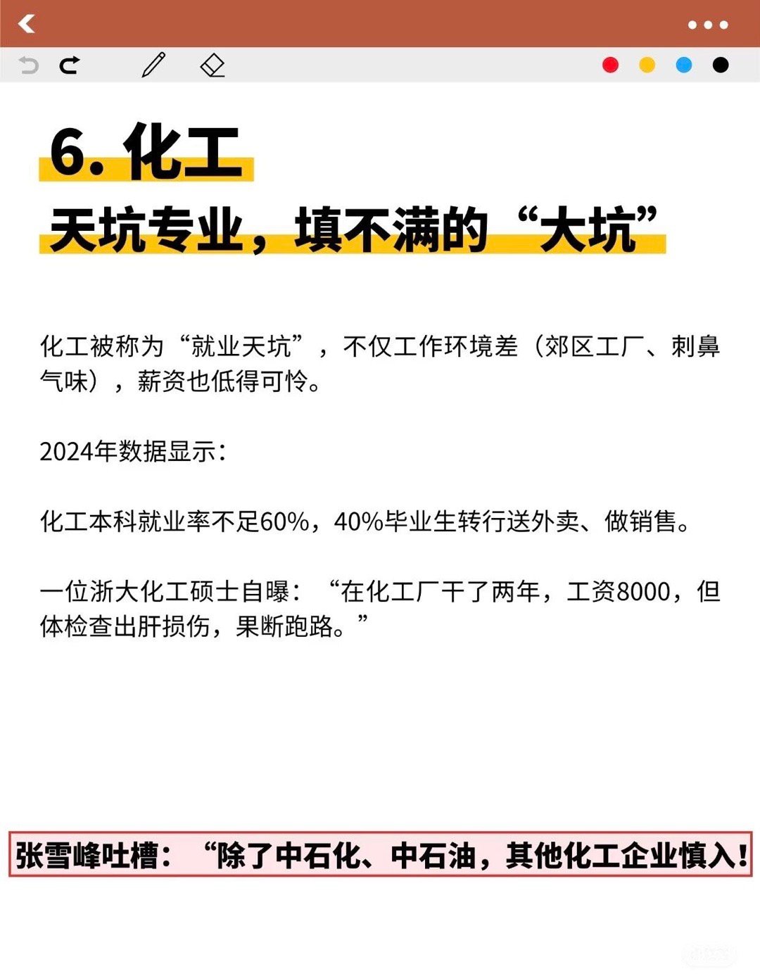 2.普通家庭的孩子,别碰‘天坑专业’,生化环材四天王,没读博士别逞强。