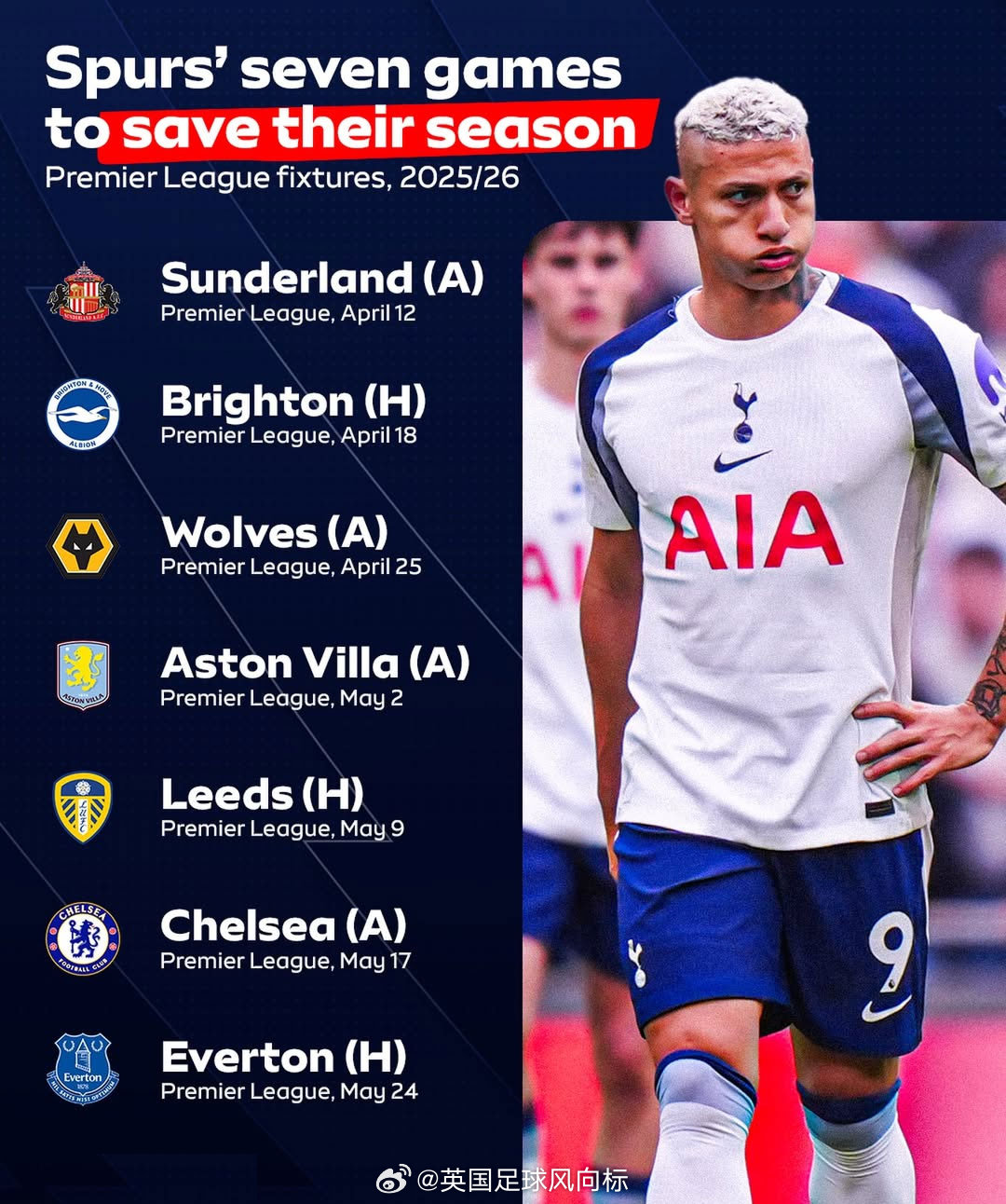 【热刺保级战赛程分析】英超时代从未降级的热刺,目前在联赛积分榜,仅仅高出降级区1分,随时都有可能掉进降级区。所有保级球队都是剩下7场比赛,而是热刺的赛程和对手就如下图,大家觉得热刺7场至少要拿多少分,才能够成功保级呢?