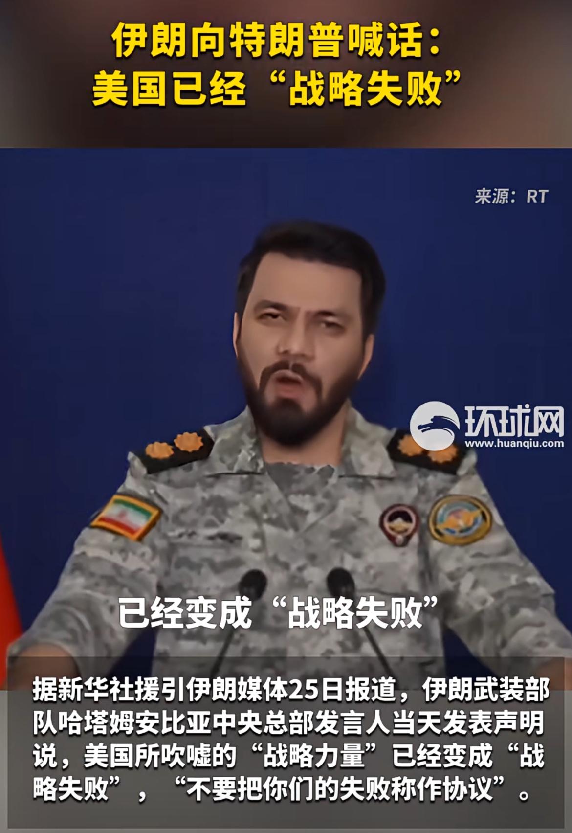伊朗宣称:美国“战略力量”沦为“战略失败”! 3月25日,多家伊朗媒体报道,伊朗武装部队哈塔姆安比亚中央总部发言人当日发表声明,指出美国所吹嘘的“战略力量”已沦为“战略失败”,还直言“别把你们的失败称作协议”。 3月24日,特朗普刚宣称对伊朗的战争“已获胜利”,还称伊朗准备“达成协议”。然而第二天,伊朗武装部队便强硬回击。不得不说,伊朗和俄罗斯一样,报复从不隔夜。 美媒称,美国已转交包含15个要点的结束冲突计划,且正在讨论与伊朗进行高级别谈判。但此前伊朗就已拒绝美国特使威特科夫和特朗普女婿库什纳担任谈判代表。由此可见,伊朗对与美国谈判失去了信任,伊朗如今抵抗意志坚决,不会轻易与美国达成一致,美国想在伊朗这儿“胜利”,恐怕并非易事!