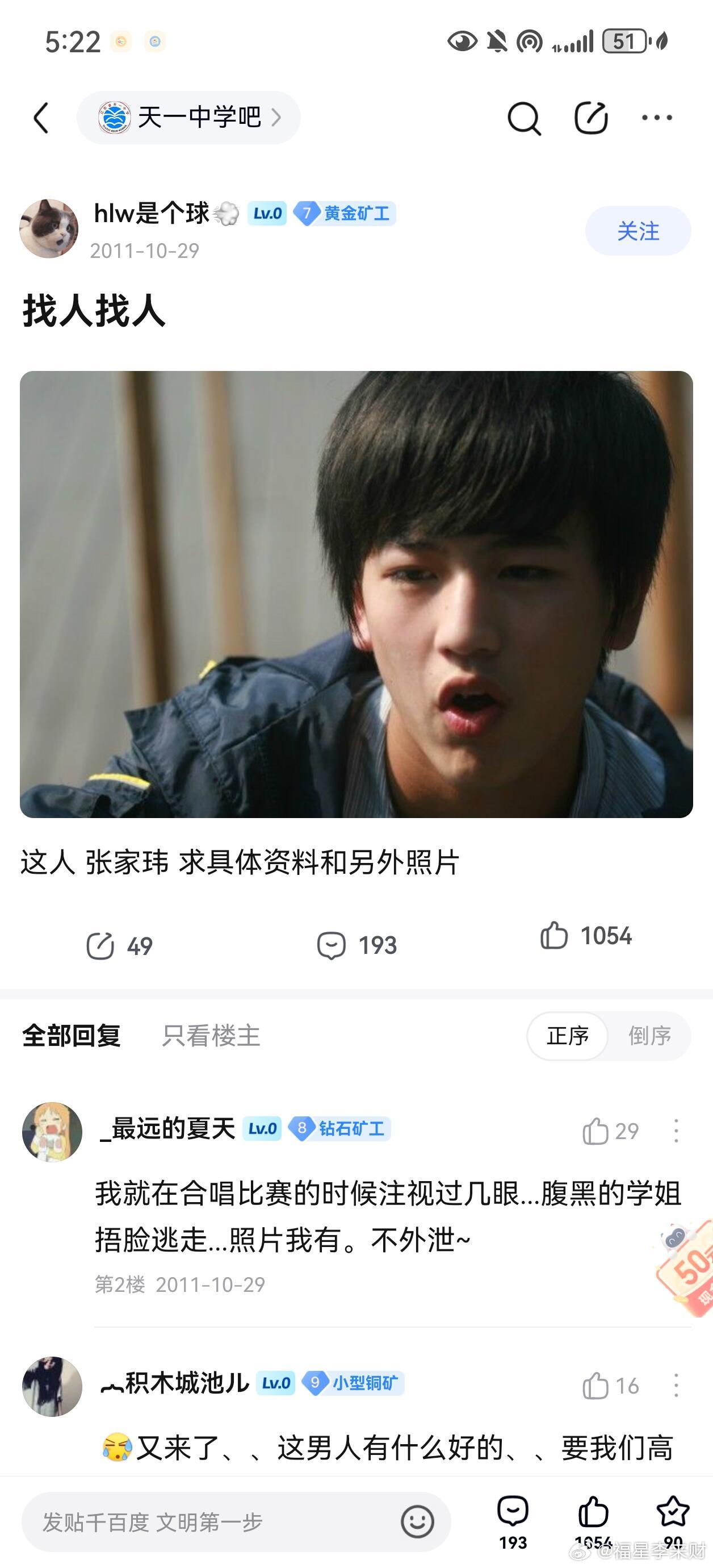 15年前的预言家刷天一的贴吧TMD这个评论笑死了我靠啊哈哈哈哈哈哈哈哈哈哈哈哈哈哈哈哈,张家玮唱歌风评依旧
