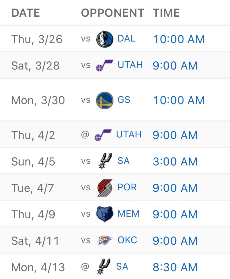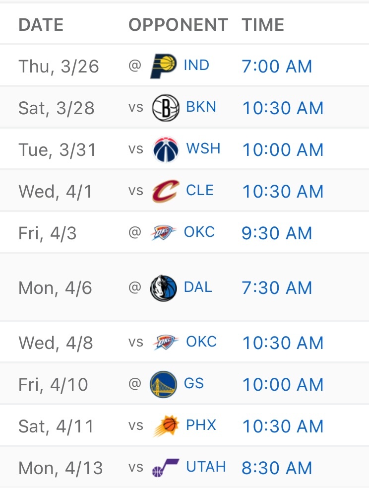 从后续赛程来看,湖人比掘金的更难一些,现在领先优势只有一个半胜场。谁能以西部第三晋级季后赛,看来要到最后一周才能知道了。
