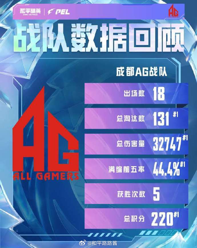 【周冠军数据回顾】AG五周四冠 AG花花又双叒叕是淘汰王 AG仙崽周决MVP