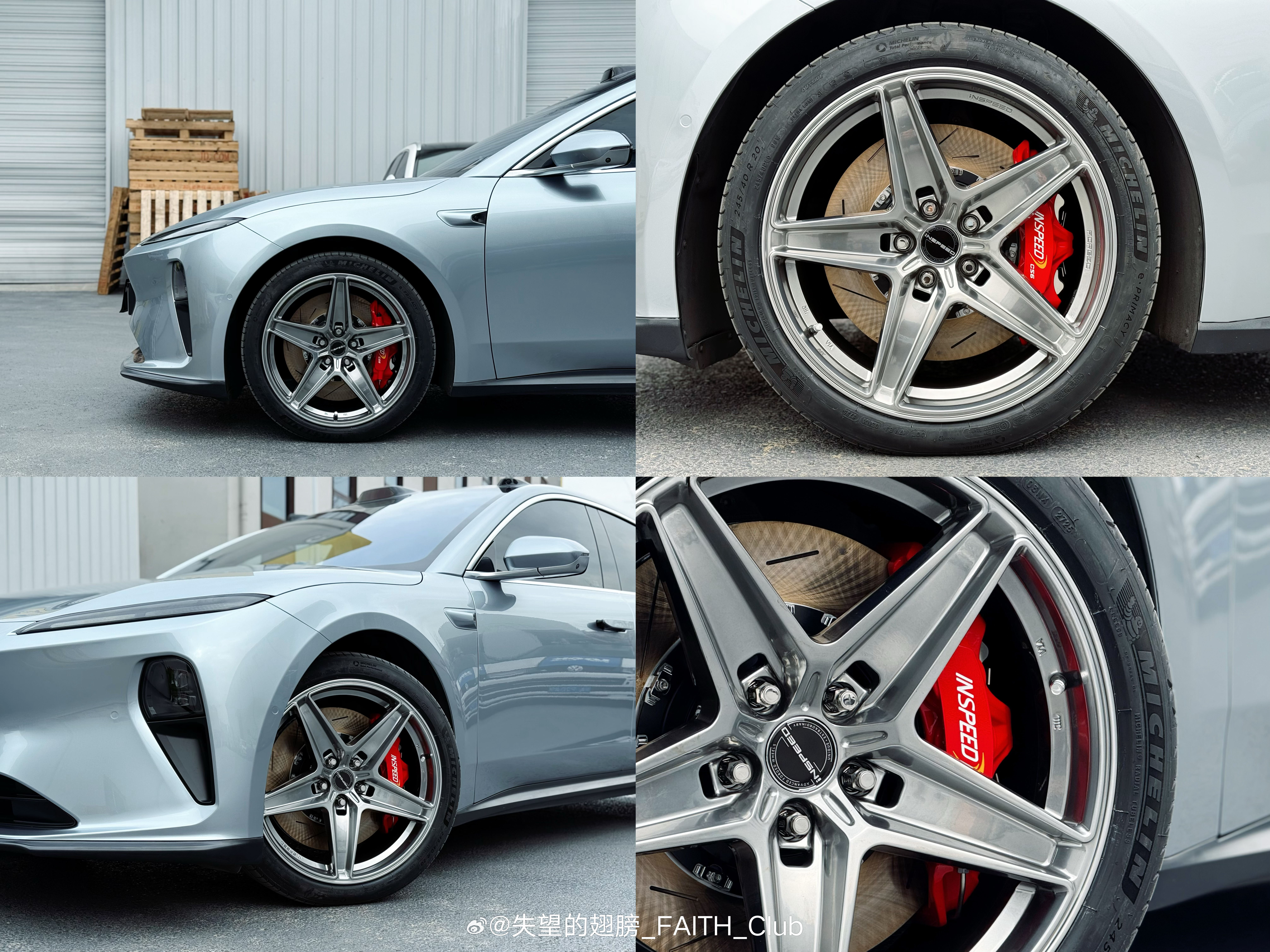 蔚来ET5T外观行走升级:全车液态水银灰改色膜,INSPEED锻造轮毂+螺丝,INSPEED CS6六活塞卡钳,性能和颜值一次性全部满足。蔚来et5t汽车改装新能源车改装卡钳锻造轮毂蔚来 成都·蔚来交付中心(南区成都高新技术产业开发区店)