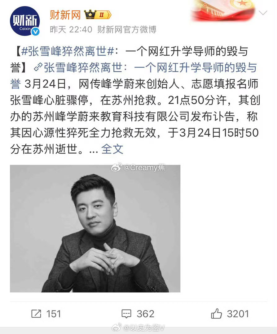 《张雪峰猝然离世:一个网红升学导师的毁与誉》,看这个媒体的标题我就服了!