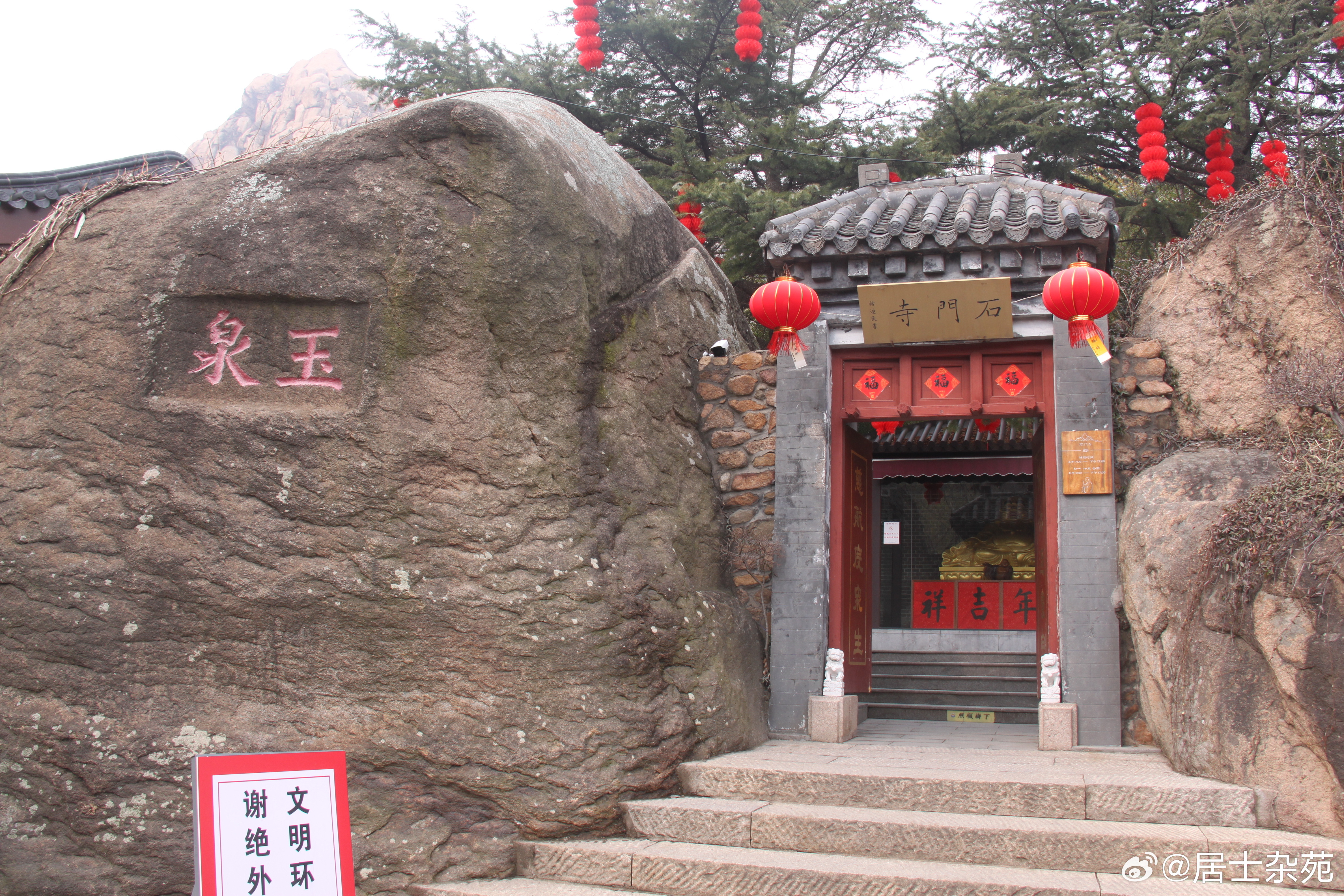 石门寺是一处大珠山石门寺风景区内著名的景点。这座寺庙以其独特的特色而闻名。寺前有