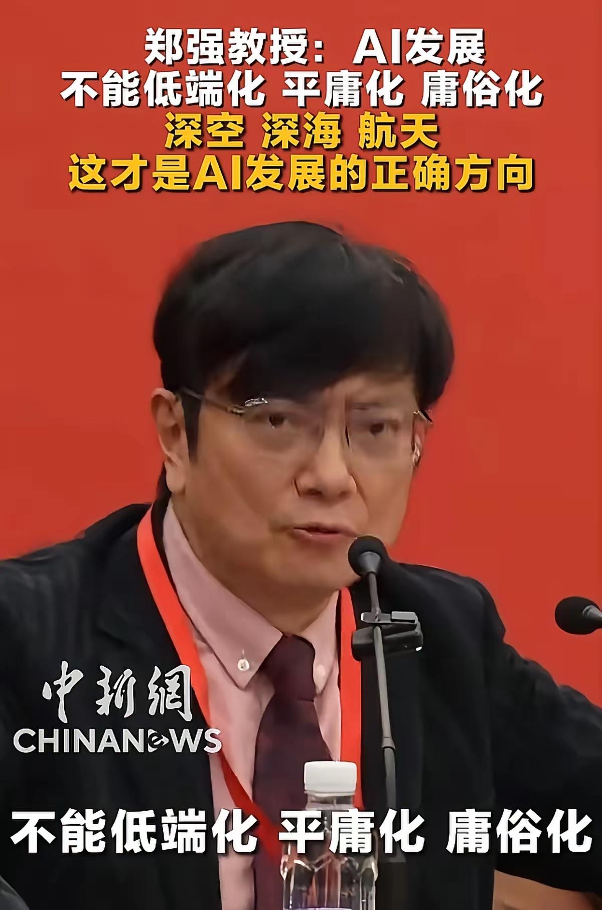 郑教授说AI发展不能低端化、平庸化、庸俗化……。 人家不是在给AI泼冷水,而是说真实警示。欧洲,科技很发达;日韩,也是发达国家,可是军事实力严重依赖美国的“保护”,美国放个屁,他们也得夸赞着说香。所以,AI的发展,必须聚焦深海、深空,提升我们的国防力量。 就像老一辈的人说的,原子弹,我们不一定用到,但必须得有,因为国家的稳定发展得靠它,震慑他人也得靠它。