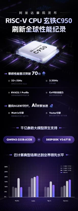 事关芯片架构领域,国内传来一个重磅消息,工程院院士倪光南断言:国外双寡头长期垄断格局终结! 看得有点激动,全球开源芯片领域的高地是属于咱们中国科技企业的。就在上海举行的2026玄铁RISC-V大会上,阿里达摩院直接祭出了一款堪称“大杀器”的存在——高性能处理器玄铁C950。 先说说,以前芯片架构领域到底是个什么情况? 过去四十多年,全球的芯片架构市场一直被两家国外企业垄断着,一个是采用x86架构的英特尔和AMD,另一个是采用ARM架构的英国公司。 咱们国内不管是做电脑、服务器,还是手机、家电里的芯片,要么得用这两家的架构,要么就得交天价的专利费,才能拿到授权,不然根本没法生产。 更让人无奈的是,人家还动不动就涨价、断供,咱们只能被动接受,被卡脖子的滋味特别不好受。 这些年,咱们国内也一直在努力突破,不少企业和科研机构都在尝试做自己的芯片架构,比如龙芯走自主指令集路线,海光、兆芯走x86兼容路线,鲲鹏、飞腾走ARM路线,但都遇到了难题。 自主指令集的生态太难建立,兼容路线绕不开国外的专利壁垒,ARM路线又面临授权风险,所以这么多年,国产芯片一直只能在中低端领域打转,高端的服务器、云计算、AI这些核心领域,几乎全被国外巨头牢牢占据。 转机出现在一种叫RISC-V的开源芯片架构上。 这种架构和x86、ARM不一样,它是完全开源、免费的,没有专利限制,任何个人和企业都能自由使用、修改和扩展,不用交一分钱专利费。 这种架构是2010年由美国加州大学伯克利分校的研究团队启动的,2011年公开发布,这些年慢慢发展起来,而咱们中国企业从2015年就开始布局,一步步积累技术、搭建生态。 就在2026年3月24日,上海举行了玄铁RISC-V生态大会,这次大会来了全球数百家产学研机构,规模很大,而阿里达摩院在这次大会上,直接发布了一款高性能处理器——玄铁C950,这款处理器的出现,直接改写了开源芯片的格局,也是倪光南院士断言垄断终结的核心原因。 玄铁C950的性能确实很出色,它采用了5nm的顶尖制程,最高主频能达到3.2GHz,综合性能是上一代玄铁C920的3倍以上,访存带宽也提升了4倍。 最关键的是,在全球公认的CPU性能测试标准SPECint2006中,它的单核性能首次突破了70分,刷新了全球RISC-V架构CPU的性能纪录,成为目前全球性能最高的RISC-V CPU。 除了性能强,玄铁C950还有很多优势。它搭载了阿里达摩院自研的两大AI计算引擎,能原生支持千亿参数的大模型,比如Qwen3、DeepSeek V3,这是RISC-V CPU第一次能直接支持这么大规模的AI模型,不用再依赖昂贵的GPU,能大大降低企业的使用成本。 同时,阿里达摩院还推出了相关的平台,让其他企业能根据自己的需求,自定义修改玄铁CPU,打造适合自己的专属芯片,门槛很低。 倪光南院士在这次大会上,给出了一组关键数据,截至2025年底,RISC-V架构的芯片全球市场份额已经突破25%,也就是说,全球每卖出4颗芯片,就有1颗用的是RISC-V架构。 这就意味着,以前x86和ARM两家独大的双寡头格局,已经被打破,现在形成了x86、ARM、RISC-V三足鼎立的局面,国外的垄断自然就终结了。 可能有人会问,为什么偏偏是咱们中国企业在RISC-V领域实现了突破? 其实这背后是咱们整个产业链的集体努力,从芯片设计的阿里达摩院、龙芯等企业,到芯片制造的中芯国际,再到操作系统、软件生态的相关企业,已经构建起了完整的RISC-V产业链。 阿里达摩院从2018年布局RISC-V以来,已经推出了16款处理器,落地了近200款量产芯片和近千款终端产品,覆盖服务器、机器人、新能源汽车、家电等多个领域,在全球RISC-V开源社区的贡献排名也是第一,牵头组建的“无剑联盟”,也带动了更多企业参与进来,一起完善生态。 现在,咱们身边已经能看到很多用了RISC-V架构芯片的产品,比如阿里云、天翼云的服务器,海尔、美的的高端家电,比亚迪、蔚来的智能座舱,还有优必选的人形机器人,这些产品不仅性能稳定,成本也更低,不用再担心被国外卡脖子。 倪光南院士说,RISC-V的突破,不是某一家企业的胜利,是中国芯片产业从单点突围到生态制胜的必然结果。 以前,芯片架构的规则都是国外定的,咱们只能跟着走,现在,凭借RISC-V开源架构,咱们中国企业已经成为了生态的主导者,有了话语权。 这次玄铁C950的发布,不仅让咱们在开源芯片领域占据了高地,也让全球芯片行业有了新的选择,不用再被两家国外企业垄断。 这不是一句空话,是实实在在的技术突破和产业落地,也是咱们中国科技自立自强的重要体现,相信以后,咱们国产芯片会发展得越来越好,在全球芯片领域拥有更多话语权。