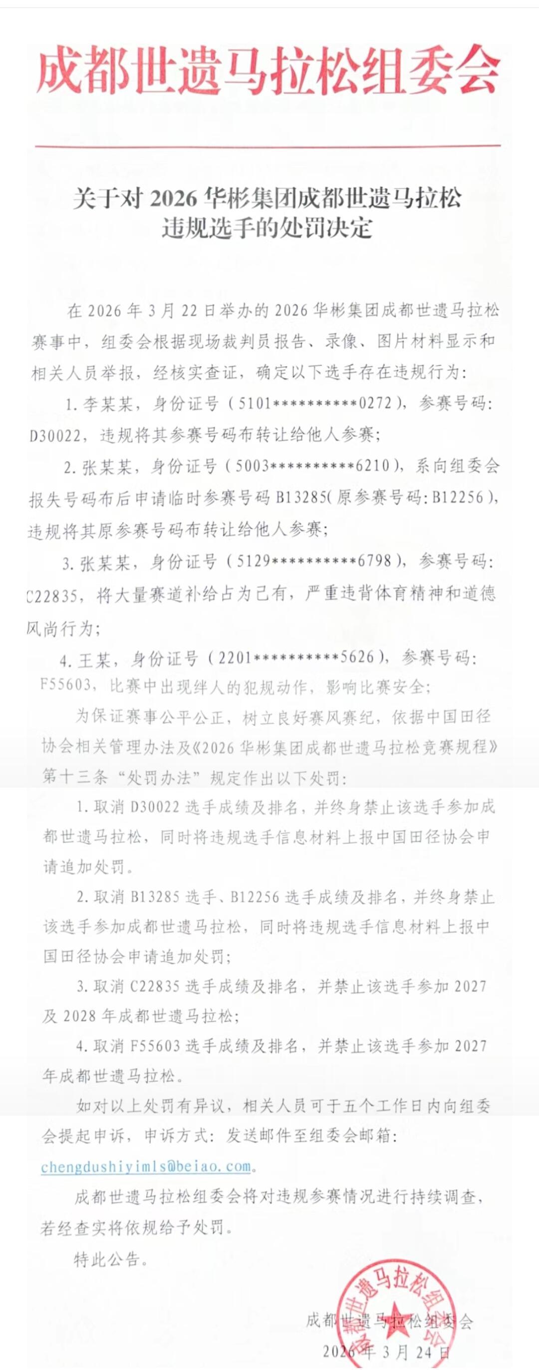 马拉松选手赛道劈叉被禁赛成都世遗马拉松女选手赛道劈叉摆拍,险绊倒他人,被取消成绩