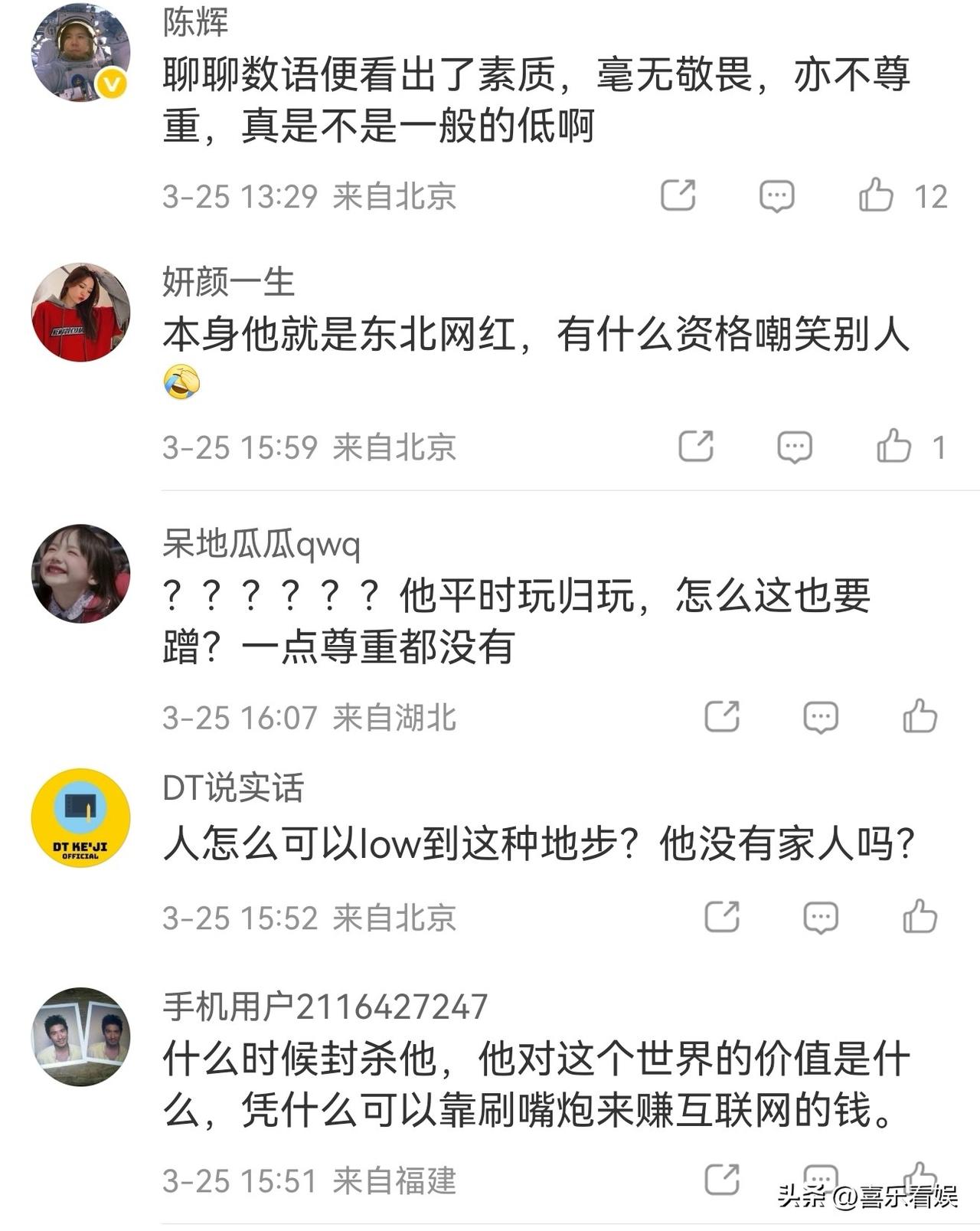 还有人质问道:“本身他就是东北网红,有什么资格嘲笑别人?”