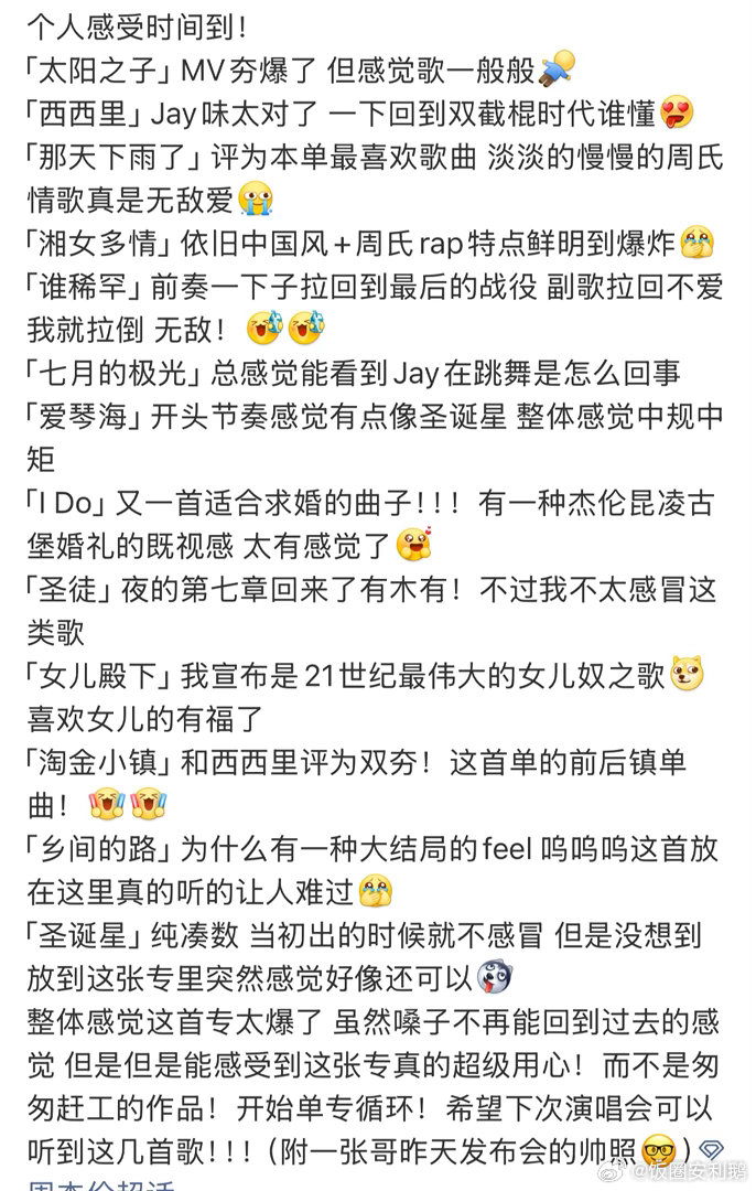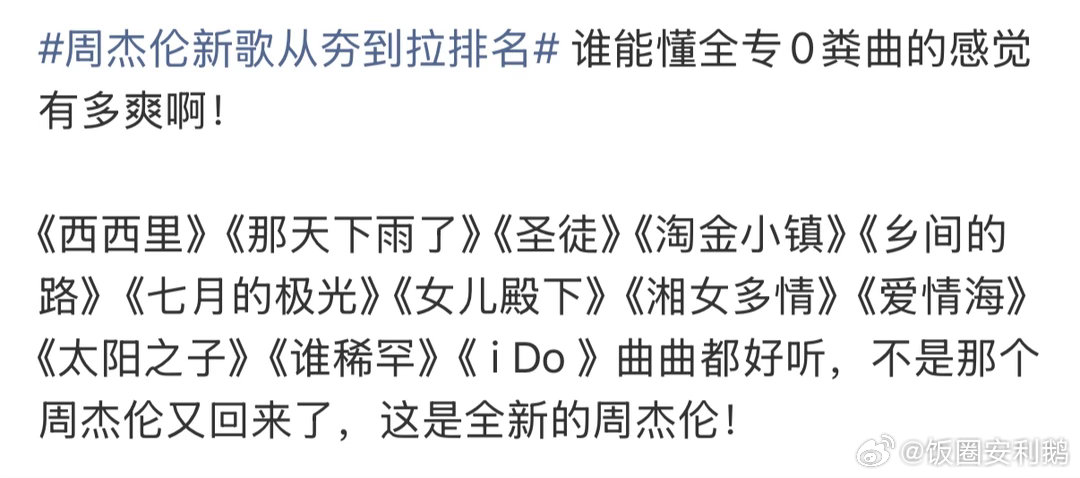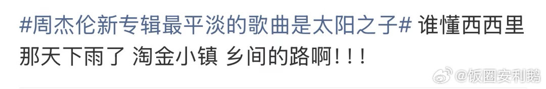 周杰伦新专辑口碑反转周杰伦新专辑整专上线后口碑实现反转除了主打之外有好几首都达到了夯的级别有木有!你周董还是你周董,现在专辑销量已经达到2026年榜第一了!个人最爱湘女多情、淘金小镇、那天下雨了!你最喜欢新专辑里的哪首?