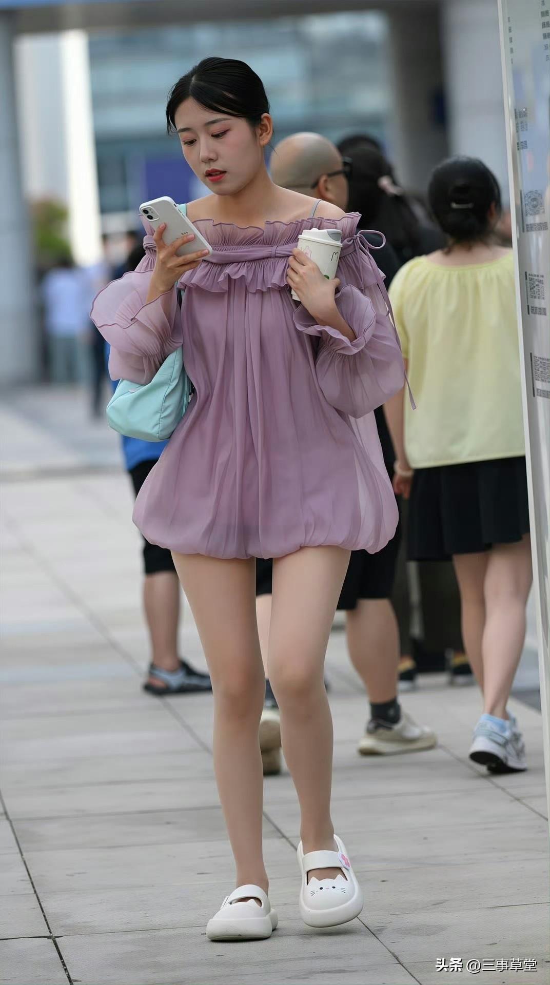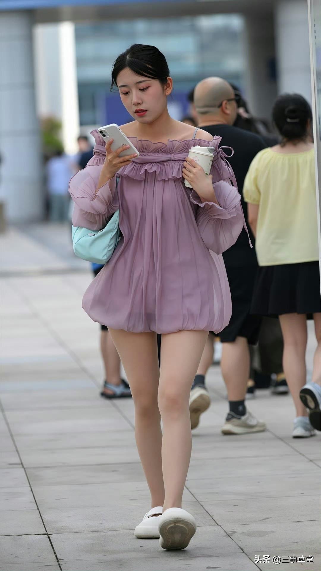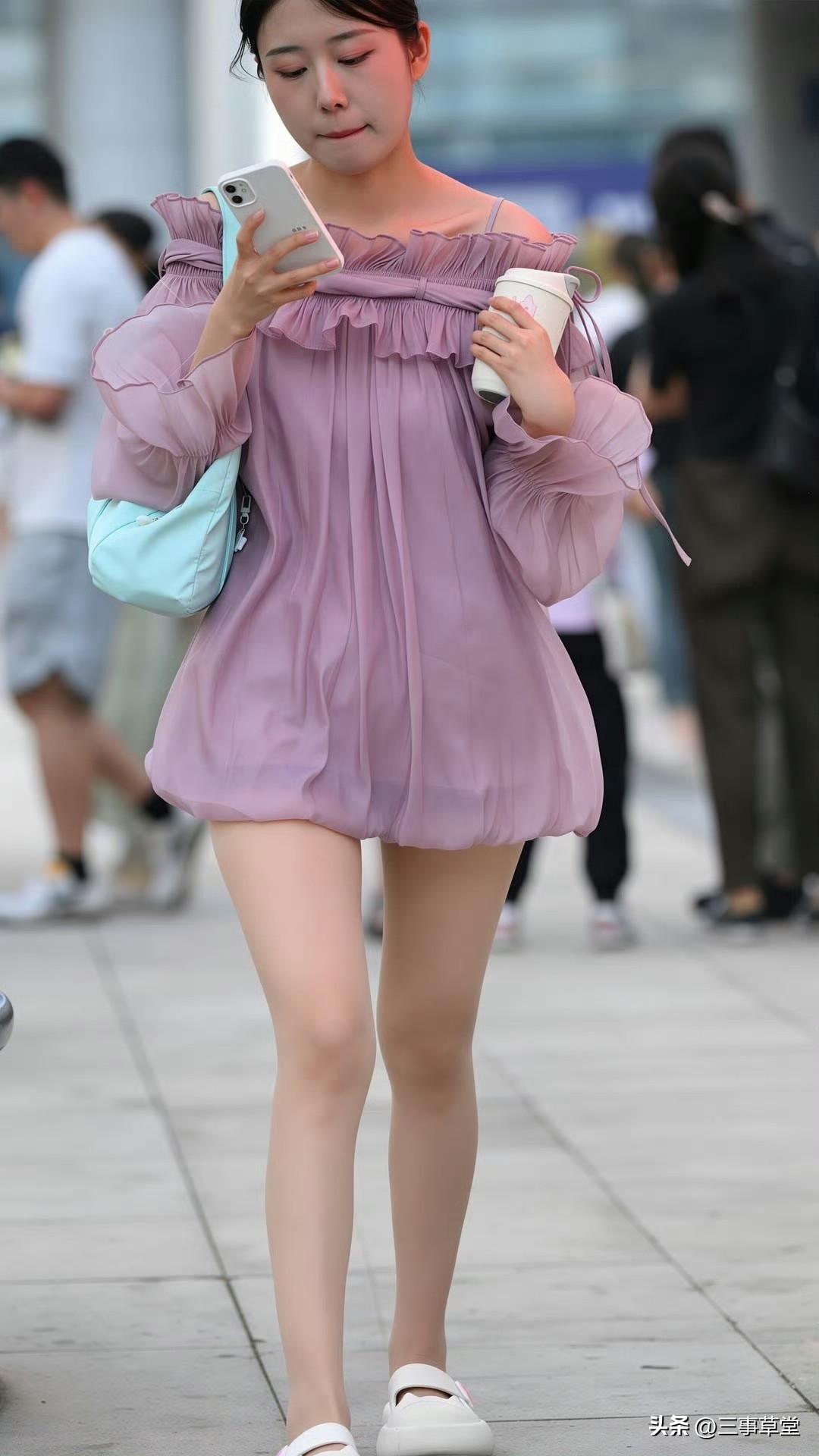 清新撞色搭配,淡紫连衣裙与薄荷包共舞,展现出夏日的活力与生机。 什么样的女