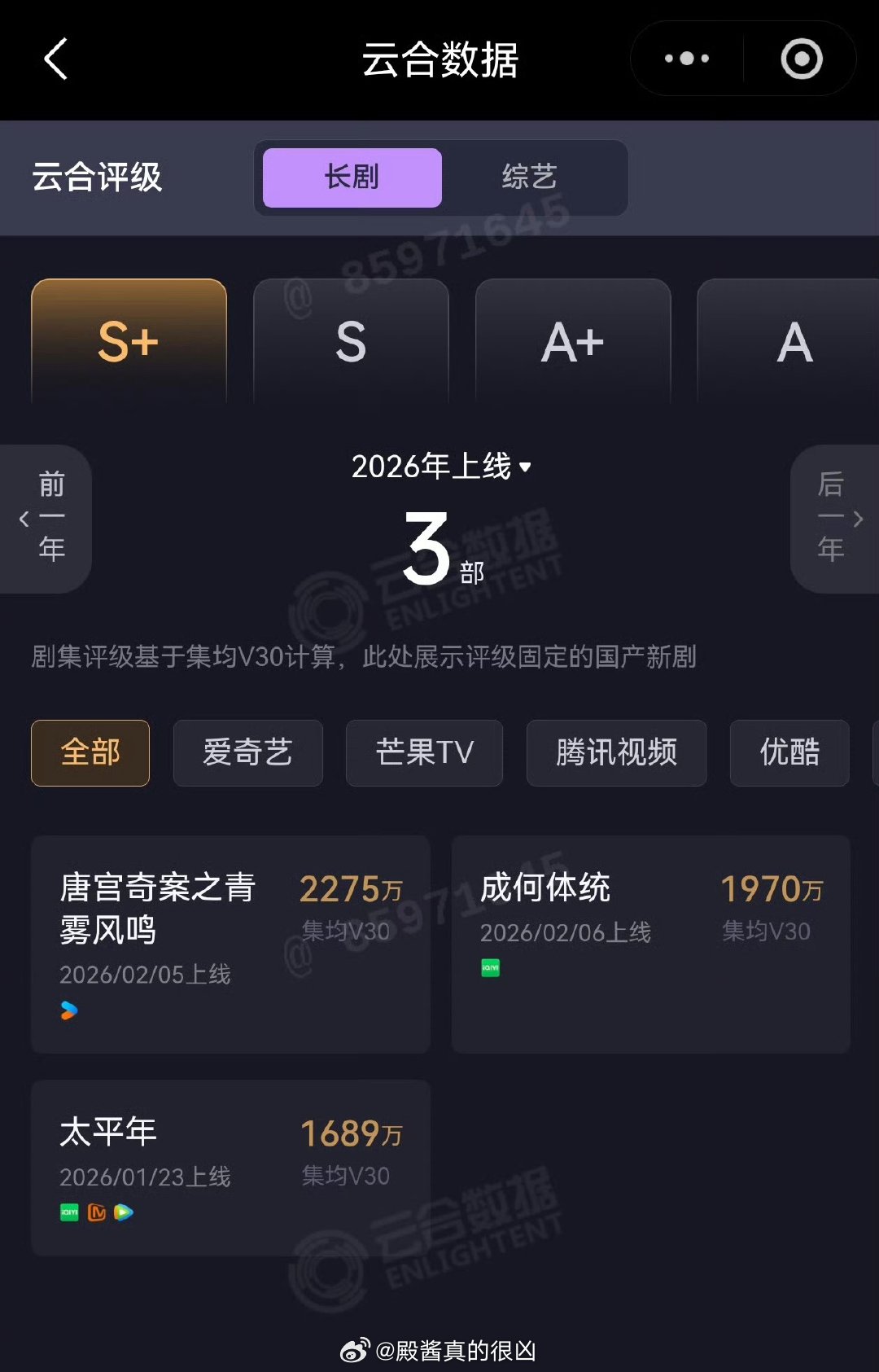 这么一看,唐宫奇案真不错,在优酷这个天残平台都能碾压